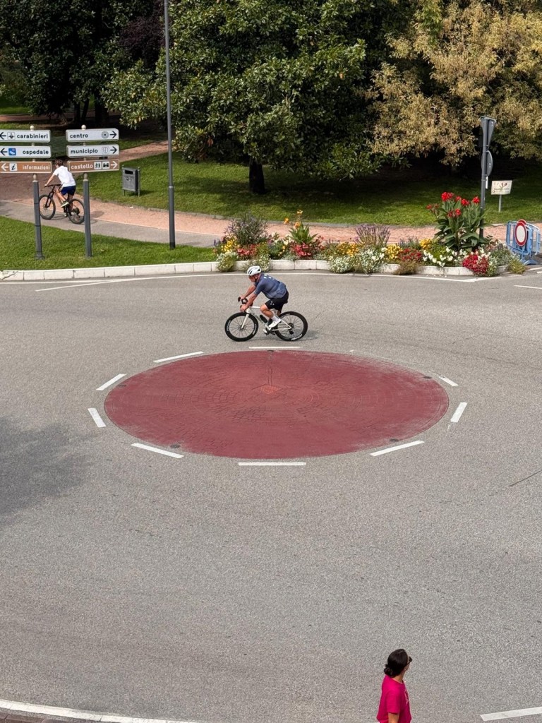 Het laatste stuk door Bolzano in de parken extra goed opletten. Er is meer verkeer onderweg en niet iedereen blijkt even behendig.