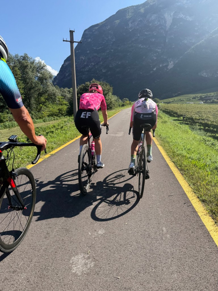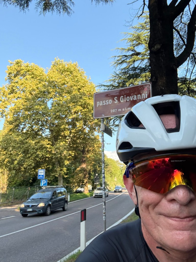Voor mij een redelijke uitdaging. Weer eens meer kilometers. Vanuit Torbole het altijd uitdagende klimwerk naar Nago. Vanuit Rovereto de hele weg licht oplopend naar Bolzano, de rivier stroomt niet voor niets de andere kant op. Maar bovendien ook wat ik me niet zo had gerealiseerd, het grootste deel van de rit wind tegen, omdat in deze omgeving normaal gesproken de wind ‘‘s ochtends uit het noorden komt en ‘s middags uit het zuiden.