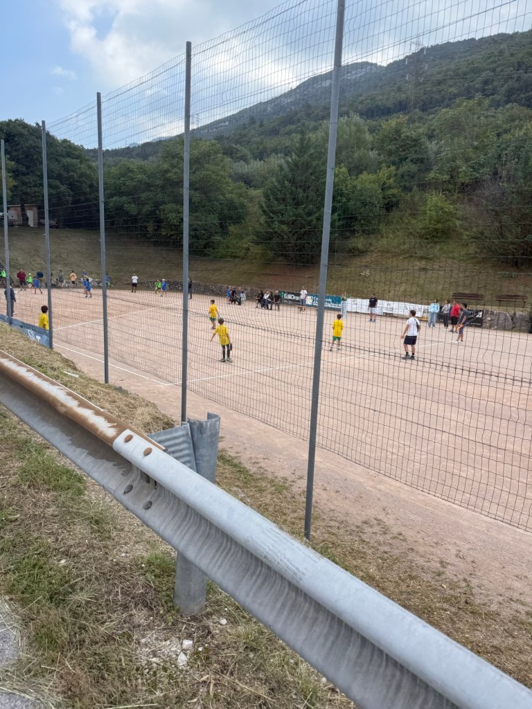 Maar ook deze weg kent een aanlooproute. Een bekende. Ik klim eerst richting het Lago Di Cavendine en kom daar voorbij een kindertoernooi Tamborino of Tamburello gespeeld werd. Een soort tennis zonder racket maar met een tamboerijn zonder belletjes er aan. Wie heeft er padel nodig als je iets oorspronkelijks kunt doen.