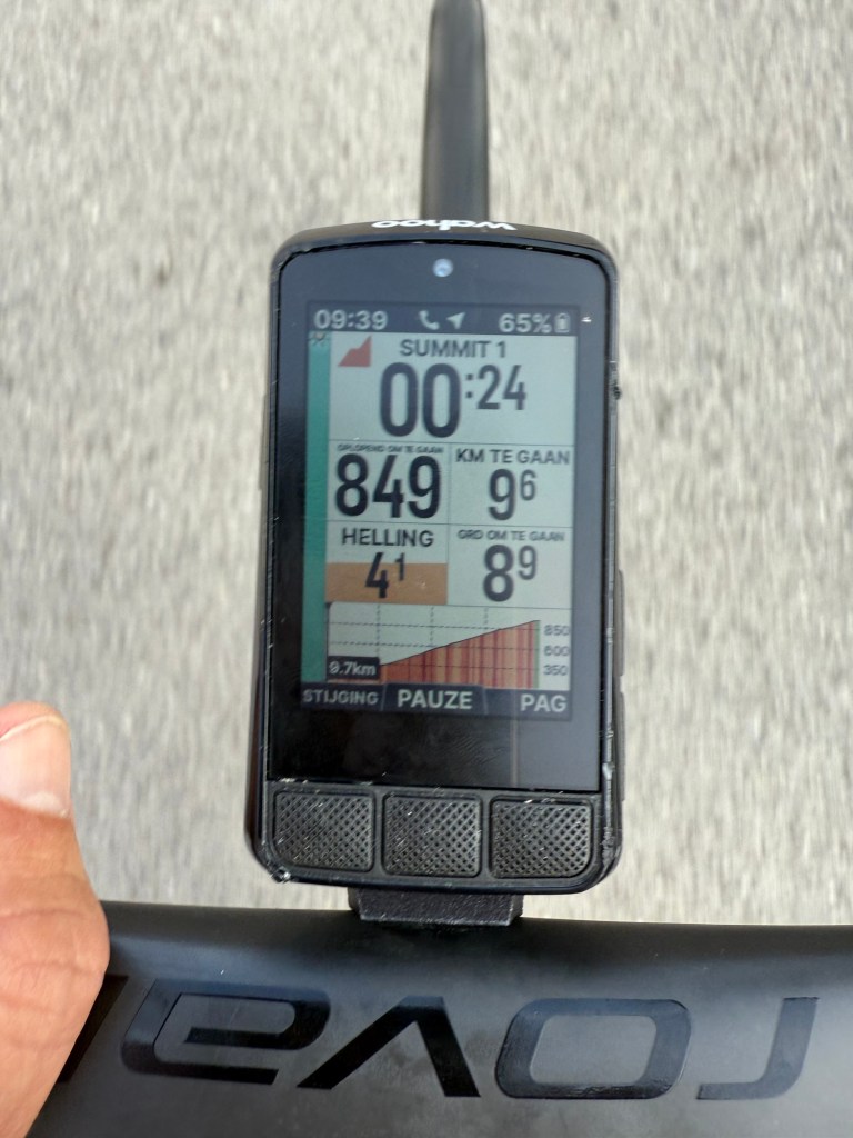De pas is bereikt. Doorrijden tot een het bord en het vlaggetje op mijn Wahoo dat ook bevestigd dat de finish is bereikt.