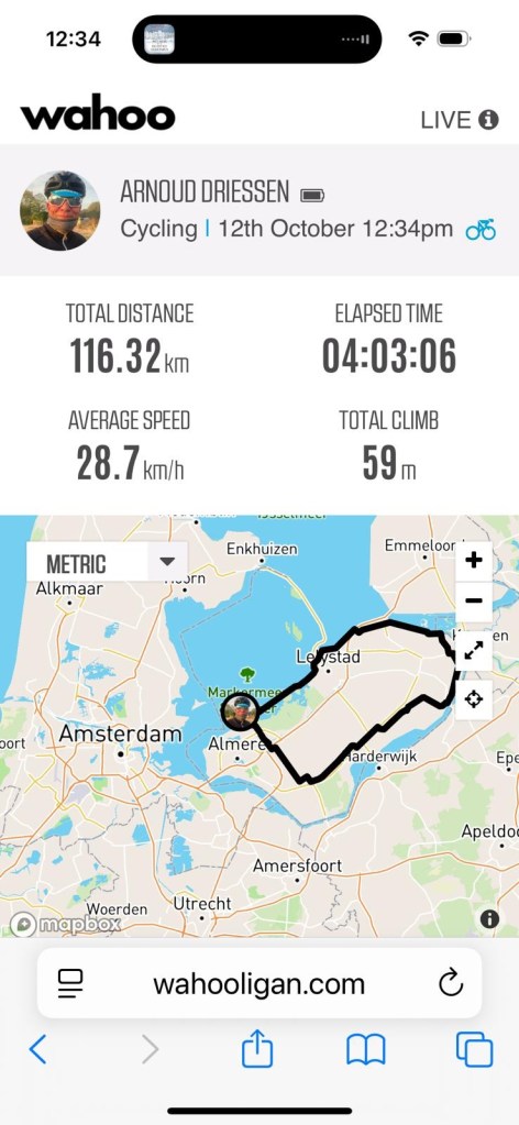 Weer zo’n goed gevoel. Iets minder goed omdat als er een Join training op mijn Wahoo loopt ik niet herinnerd word aan mijn drink en eet momenten en dan vergeet ik er wel eens een. Of twee. Of drie. Of meer.