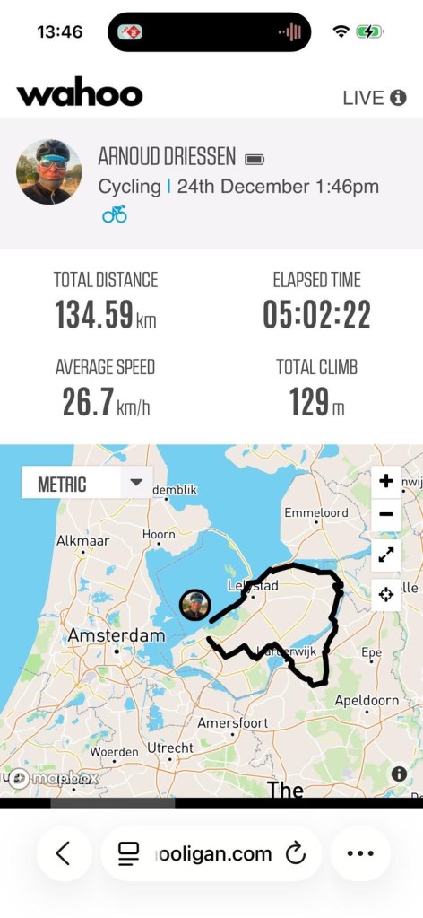 Zo eindigde ik 2025 met opvallend genoeg nog ongeveer 9750 kilometer op de teller en nu sta ik aan het begin van 2026 en staat de teller weer op 0. Niet helemaal waar want ik heb al twee uur op de Kickr gezeten. Het bijzondere is dat ik het idee heb dat wat ik heb gereden niet meer mee telt, maar dat slaat natuurlijk nergens op.