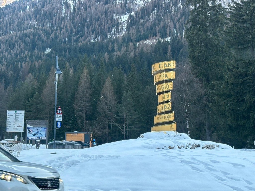 Vanuit Italië kreeg ik nog een beeld van de Trofee zonder einde doorgestuurd, zoals deze in Canazei in de Dolomieten staat te blinken. Ik heb hem in de zomer al vaker gezien. Zelfs een keer bij een voor-fiets etappe tijdens de Giro. Mijn collega gaat er graag in de winter naar kijken.