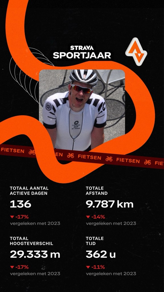 Wel tijd om terug te kijken naar 2024 op het fietsvlak. Ik was bijzonder ambitieus. Ik durf doelen nooit zo uit te spreken, omdat ik vind dat, dat dan een verplichting is om ze te behalen of toch zeker alles aan de kant te zetten dat te doen. Een kilometer aantal van 12.000, het rijden van de Sella Ronde en/of de Stelvio, een sportiever gewicht, het fietsen met een groepje en zo waren er vast nog een paar.