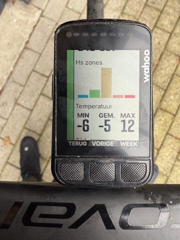 Ik vond het weer opvallend mild. Vast de gewenning. De wind ontliep ik aardig. De temperaturen waren een milde 2 op de Wahoo, ok al gaven de weersapp’s -1 aan als gevoelstemperatuur.