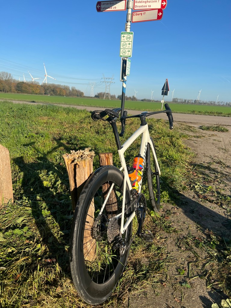 E kwam terug van een bijzonder vroeg slager bezoek en vertelde me dat het weer niet best was. Een moment van twijfel terwijl ik al 3/4 aangekleed klaar stond. Maar dit was de kans om naar buiten te gaan, de komende dagen zouden andere activiteiten het niet mogelijk maken, lampjes zaten al op de fiets en ik had ook al een spatbord gemonteerd.