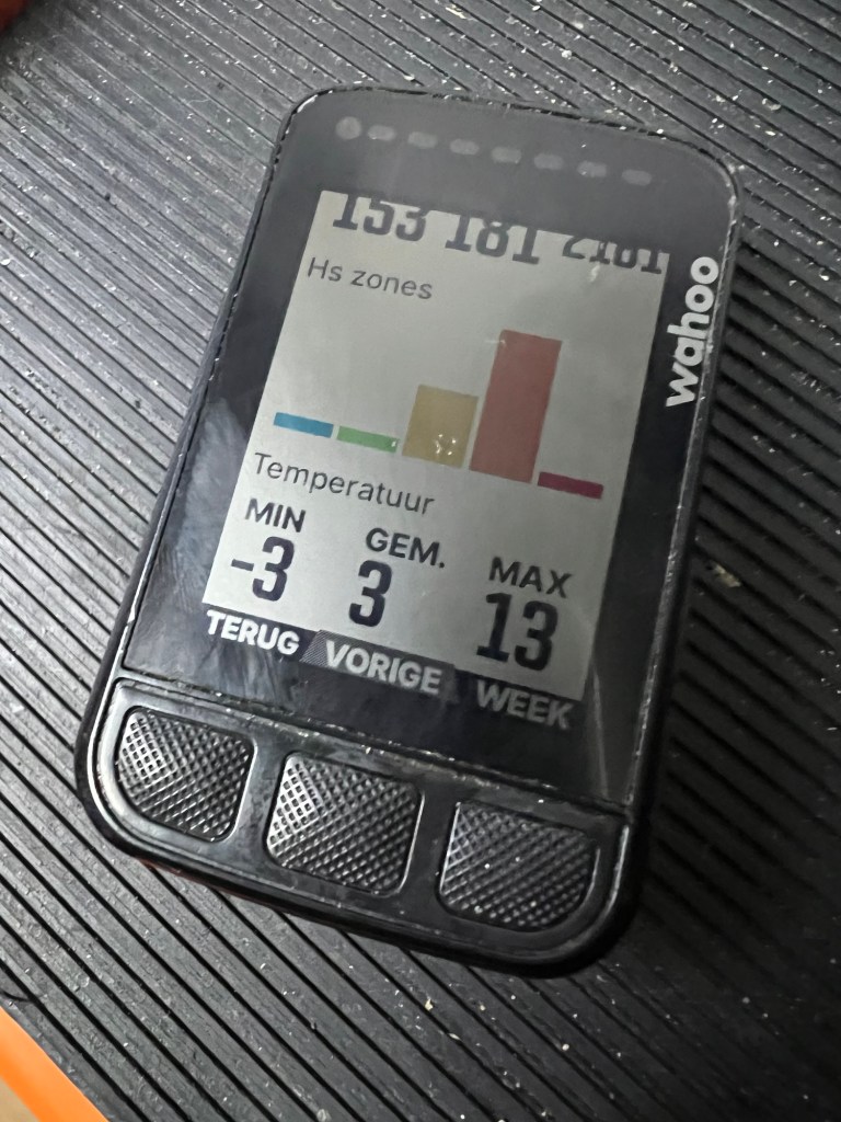Zo reed ik de ronde en peuzelde ik al een flink stuk van het totaal af. Thuis aangekomen had ik pas door hoe koud ik het had gekregen. Rood uitgeslagen onder de douche. Bibberend een broodje eten. Onder een dubbel geslagen dekbed warm worden.
