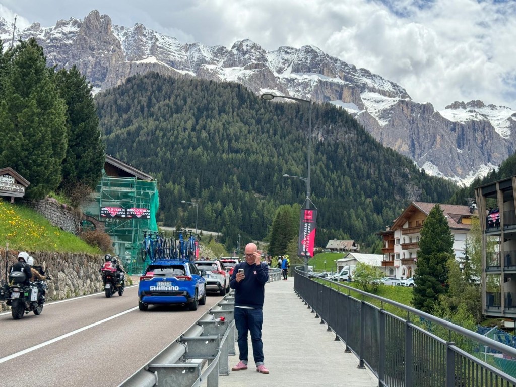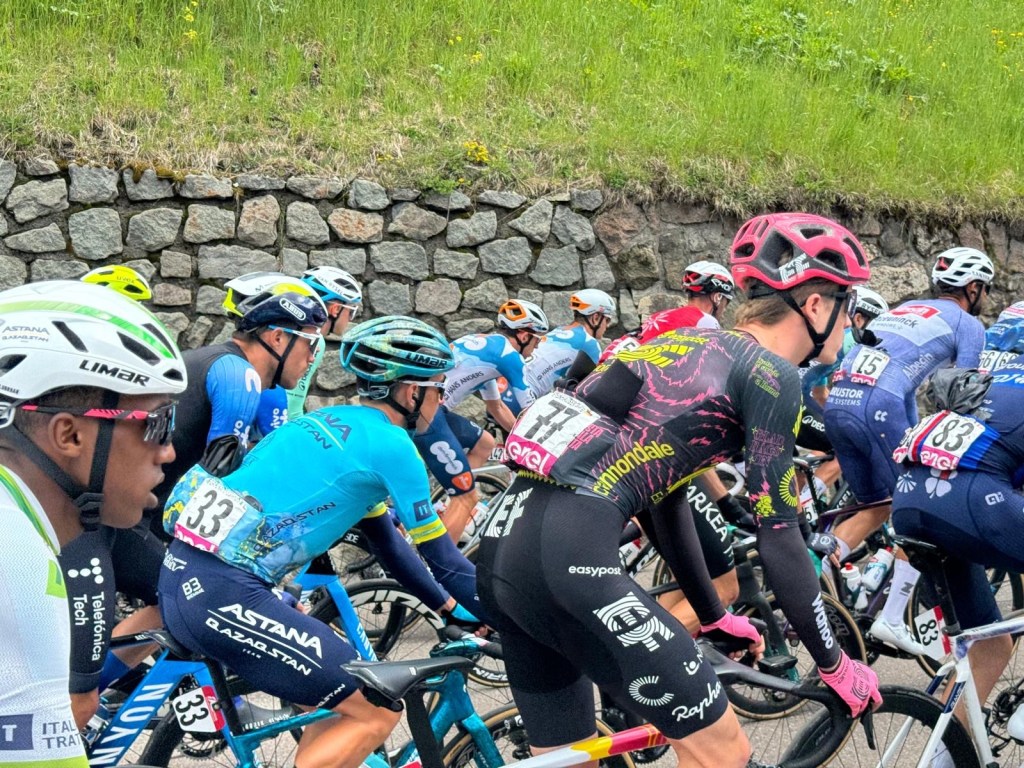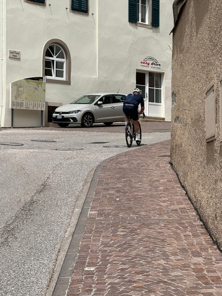 In Auer ging een groep Amerikanen beginnen met fietsen. Zag er goed uit. Één van hen, die eerder dacht dat ik er bij hoorde en vertelde wat de stijgingspercentages ging onderuit vlak nadat ik hem had ingehaald. Hij reed van de weg af. Onhandig. Laten we het daar bij laten.