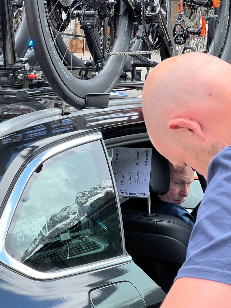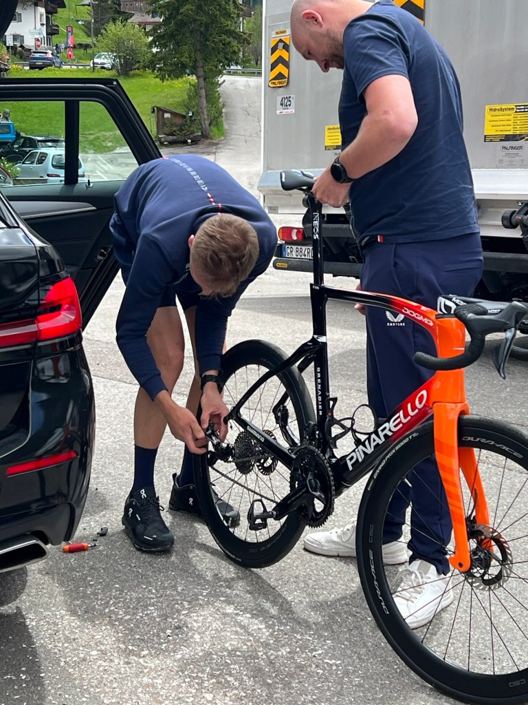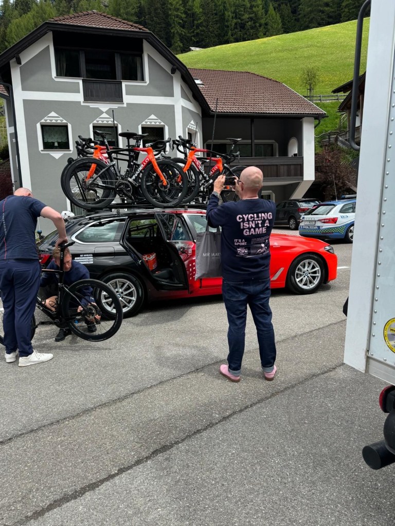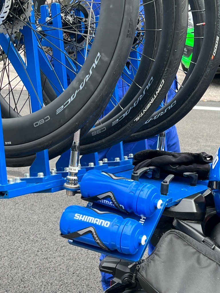 Heel vervelend voor het team en nog vervelender voor de mecanicien was dat er problemen met een fiets waren net na de start. Voor mij natuurlijk genieten.