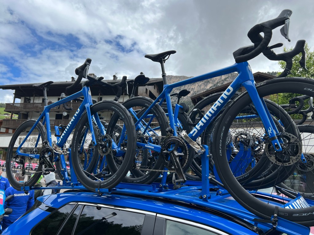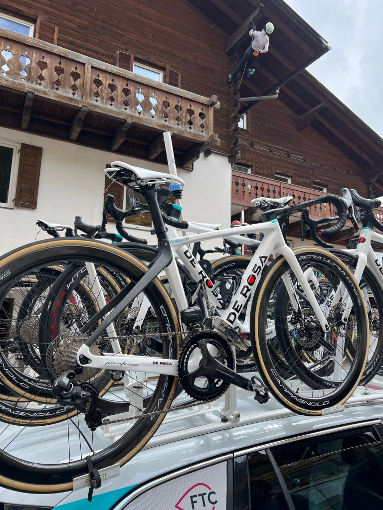 Bij Bardiani rijden ze nog wel met Campagnolo op hun De Rosa’s en dat doen ze niet onverdienstelijk, mede gelet op de tweede plaats gisteren van de 20-jarige fan van Pogacar. veel Italiaanse dan deze fiets wordt het niet.
