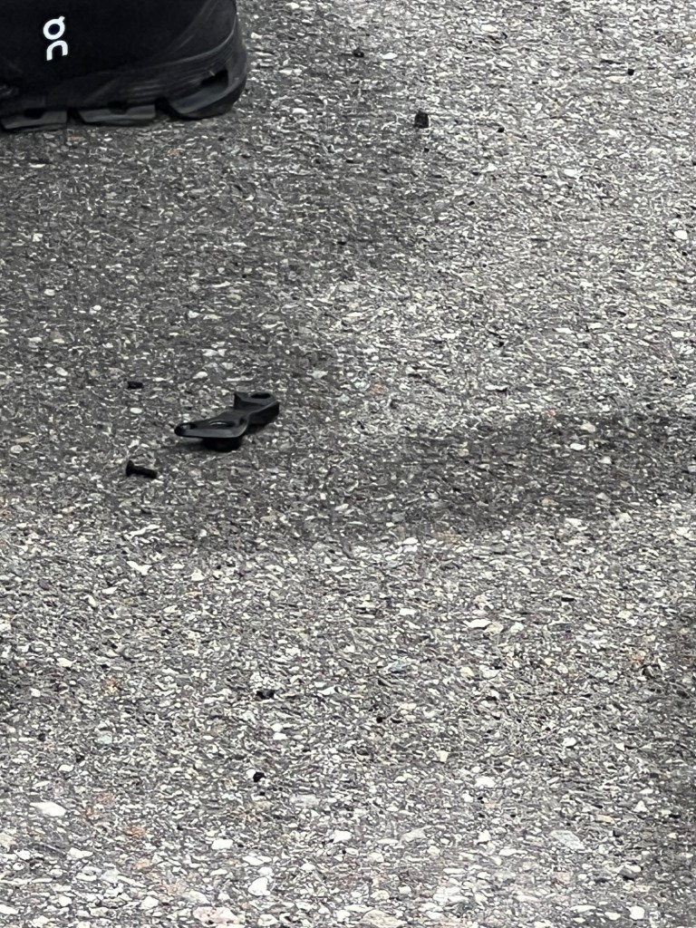 De pat, waar de achterderailleur aan zat was afgebroken en moest vervangen worden.