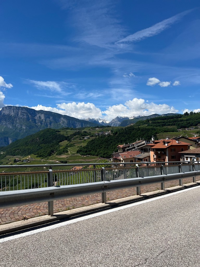 Ik was nog niet tot aan Trento gefietst, dus vond het leuk om dat nog eens te doen. Lekker rijden over het fietspad. Van de provincie Bozen naar Trento. Langs de A22, de verdwijnende asperge velden en groeiende appels en druiven. Uitlaatgassen zijn blijkbaar goed voor ze.