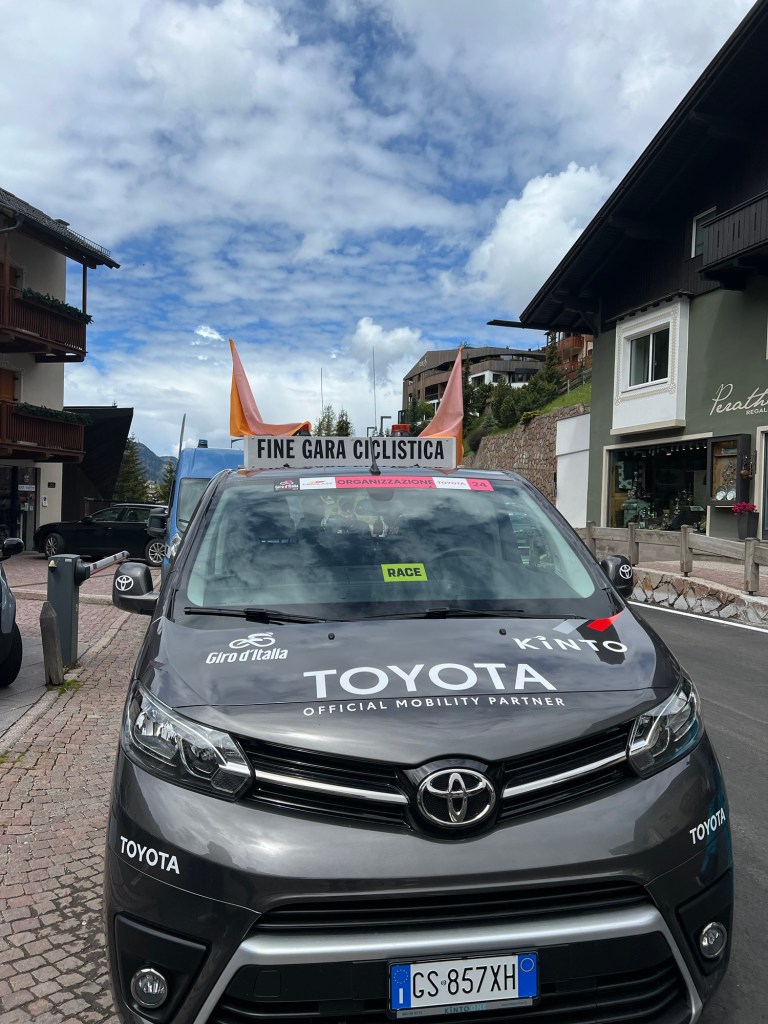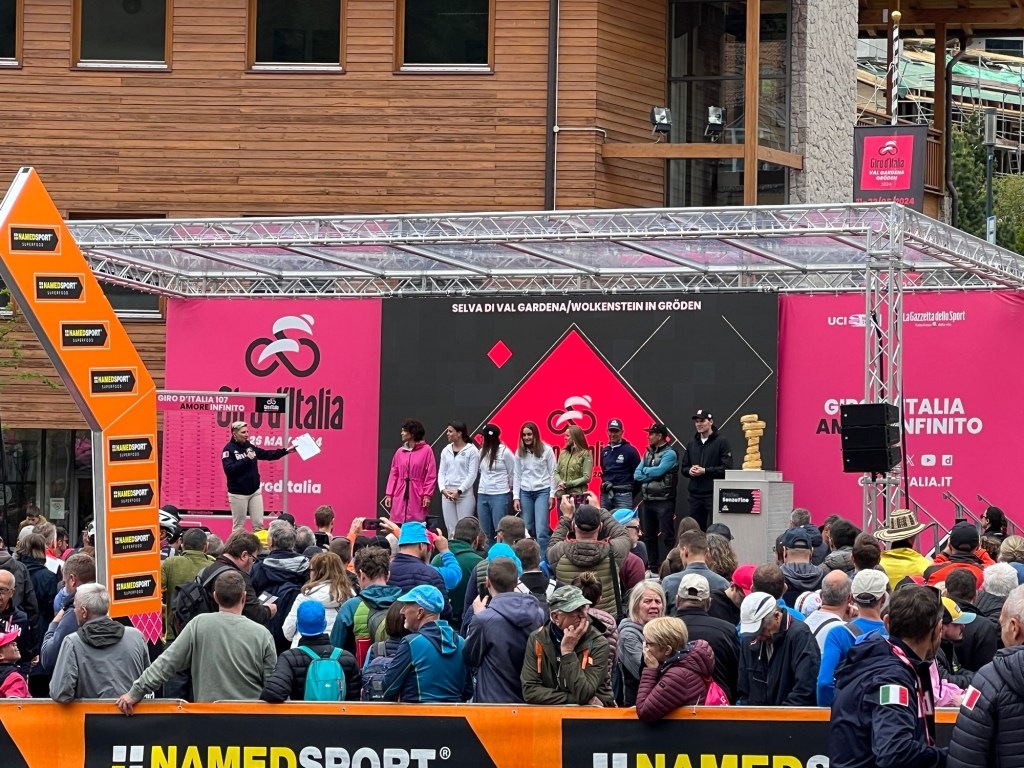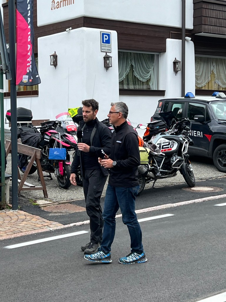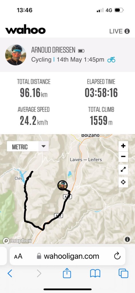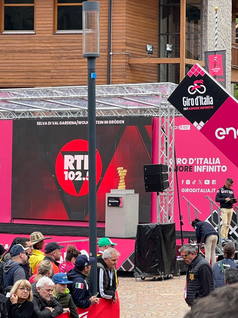 Het werd ook het laatste. Een kans om Pogacar in het roze te zien en de hele sfeer nog eens op te snuiven wilde ik me niet laten ontgaan en werd gelukkig volledig gesteund door E. Op de dag die volgde op een dag die “Romantisch regenachtig was”, waar gesleuteld werd aan onze vriendin n we hoorden dat onze Italiaanse vriend alle een aantal weken in het ziekenhuis ligt met een hart probleem, gingen wij er voor. Op naar de start in Wolkenstein in Gröden / Selva di val Gardena.