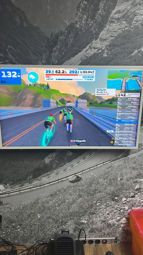Er is een rit die de laatste van het jaar moet zijn. Dat was voor mij vandaag met mijn Zweden in Zwift geleid door een Duitser. Geen idee hoe dat in elkaar zit, maar het is een aardige zondagochtend bezigheid om met ze mee te rijden.