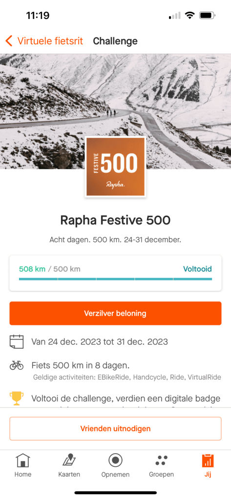 Met deze rit er bij maakte ik de volgens Strava 666 kilometer in de Festive 500 vol. Daarbij er meteen voor zorgend dat ik de kilometers van 1ste kerstdag nog een keer (ruim) bij elkaar gereden heb. Waarom zul je, je misschien afvragen? Omdat de 1ste kerstdag voor de familie hoort te zijn en niet de fiets, is wat sommigen aanhangen. Gelukkig was het bij een combinatie van. Familie en fiets. Al dan niet in deze volgorde, is aan de lezer om te bepalen.