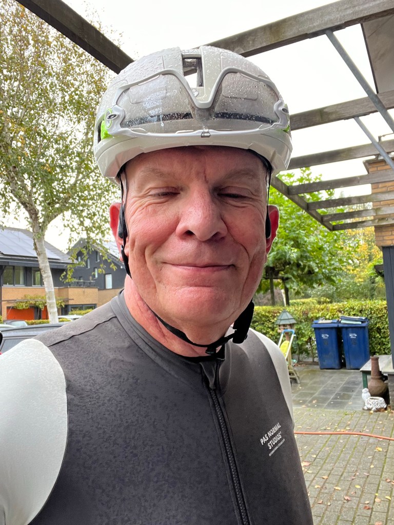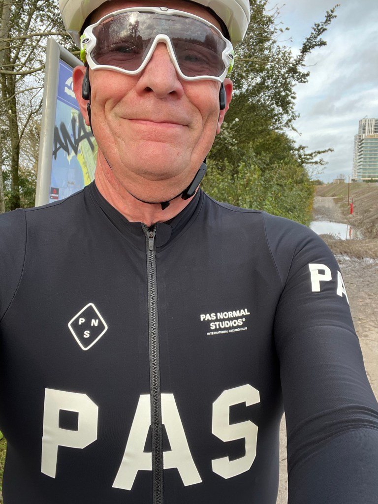 Zaterdagochtend. Het leek een flinke tijd droog te blijven. Zou ik laf op de Kickr stappen of naar buiten? Het werd het laatste. Nieuwe pakje aan en rijden. Geen schema maar trappen zoals het ging zonder te gek te doen.