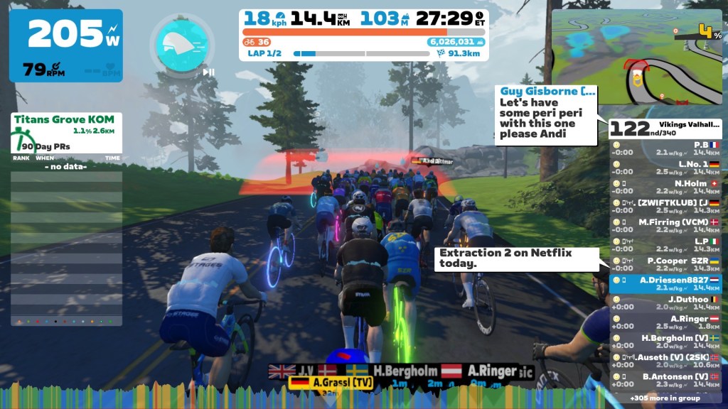 Vrijdag vond ik tijd. Een rondje op Zwift. Nieuwe route. Groepsrit. Ik begin enthousiast. Bleef dat de hele tijd en reed de hele ronde uit. Goed gevoel. Goede groep. Alles goed.