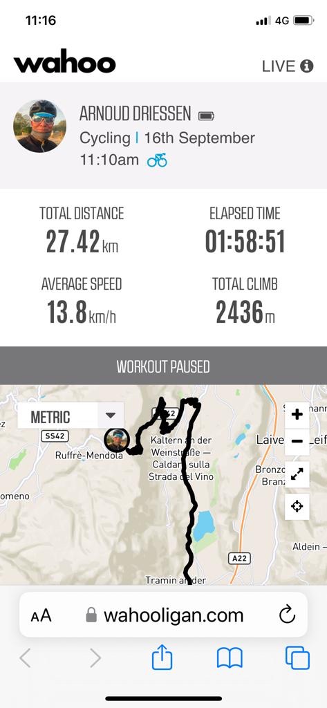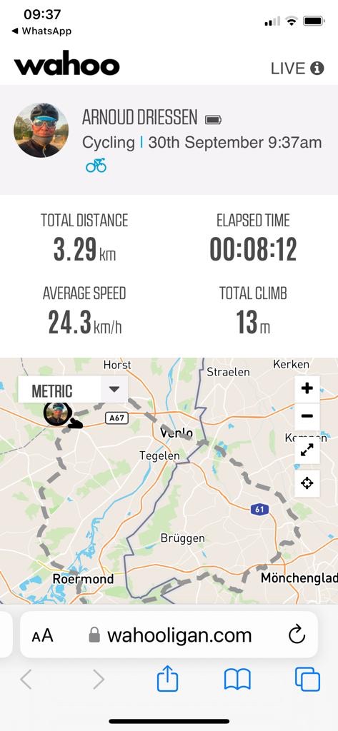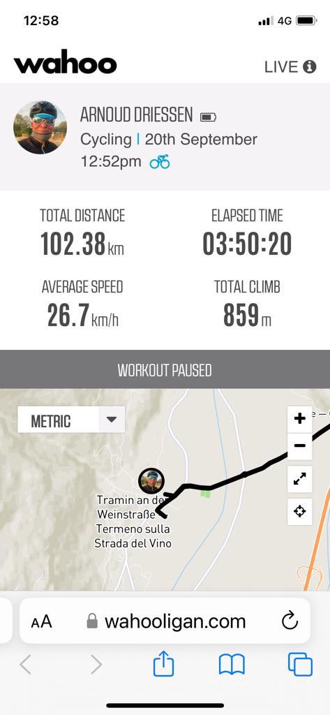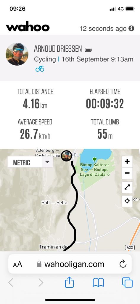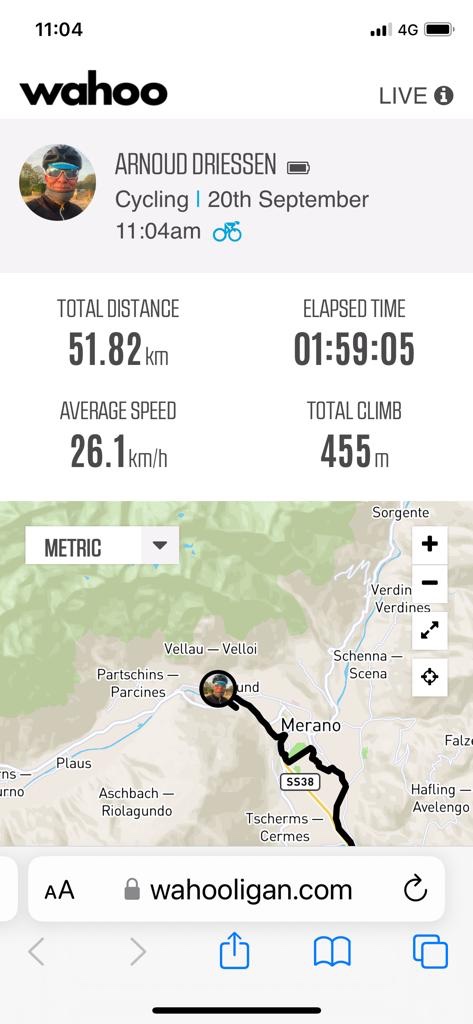 Punt om het Wahoo volgers bericht te versturen nadat ik vanuit het dal naar boven ben gereden