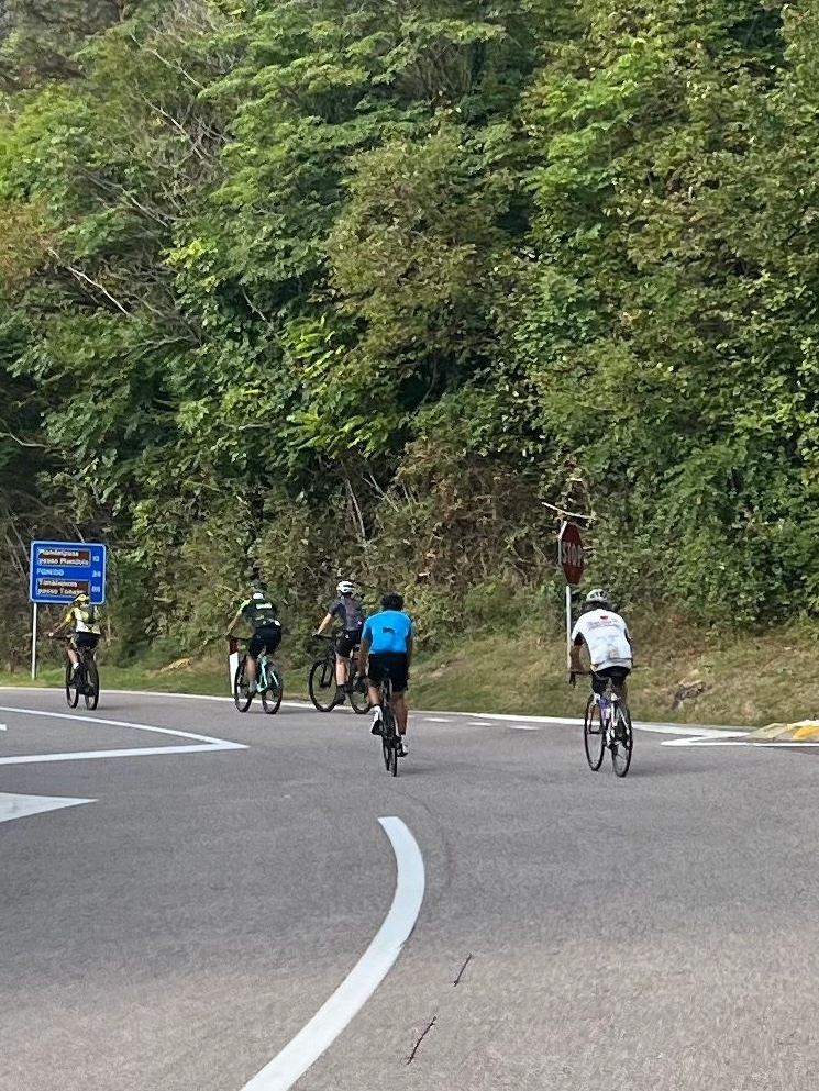 Ik reed rustig verder. Mijn shirt van vochtig naar kletsnat. De serie haarspeldbochten volgde. 9 stuks op een rij. Mooi blikken op het dal, af en toe verscholen achter een laag met wolken.