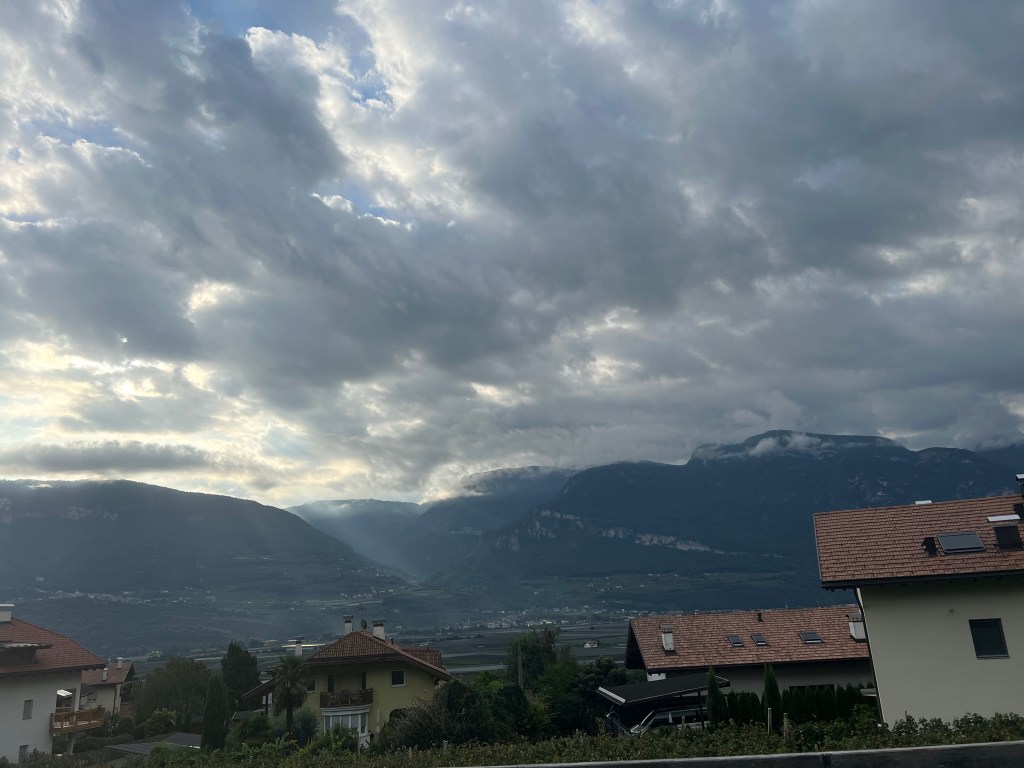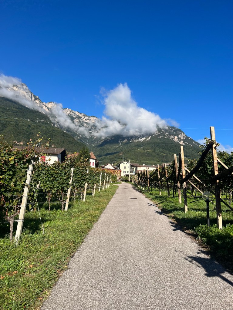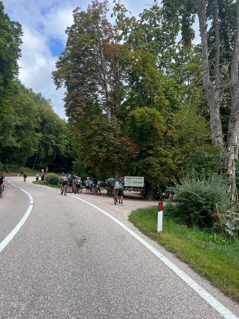 Dan is het opeens de laatste dag van de vakantie waarop je een fiets rit kunt starten in Tramin. Waar het aan het begin een kleine eeuwigheid lijkt, vliegt opeens de tijd en sta je, je schoentjes nog eens dicht te draaien, banden op te pompen en bidons te vullen met de laatste kans in je gedachten. Nog een keer kort – kort, met voor de zekerheid een ondershirt aan omdat de ochtenden wat fris zijn, zonder verder na te hoeven denken over wat je nu precies aan moet denken, zoals in de Nederlandse herfst. Bij de lokalen zie je hier natuurlijk al weer renners die hun lange mouwen shirts en wind jasjes uit de kast hebben gehaald. Het is 21 september dus herfst en dan zullen ze zich ook herfstig kleden.