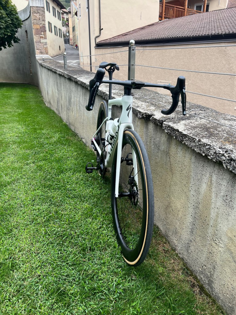 Ik daal af. Word wat opgehouden door wat langzamere leiden, maar wil er niet kamikaze voorbij terwijl er nog massa’s volk proberen om boven te komen. Ik voel me zeker op de SL8. Dat is precies wat je wilt van een fiets. Ik ben zelf beperkend genoeg en dat moet vooral niet de fiets zijn. Merk wel dat ik nog wat kan verbeteren in het doorkruisen van de haarspeldbochten.