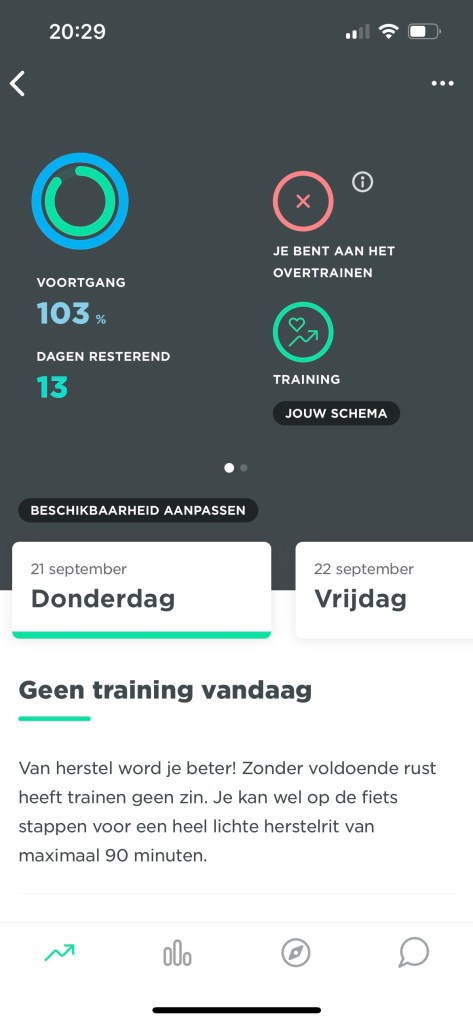 Terwijl ik weet dat als je, je wel aan de zones houdt, je minder vermoeid bent, je oefeningen beter uitvoert en dan ook de volgende dag weer aan de bak kunt en niet een extra rustdag voorgeschoteld krijgt.