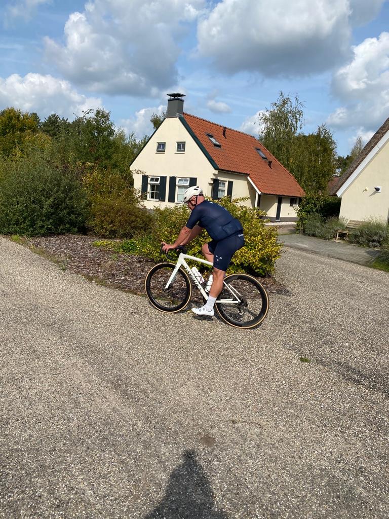 Het is wat bewolkt, maar al snel druipt het zweet van mijn hoofd tijdens het fietsen. Ook al probeer ik mijn wattage meter in de duur one te houden, mijn benen willen meer en duwen het crankstel lustig in de rondte.