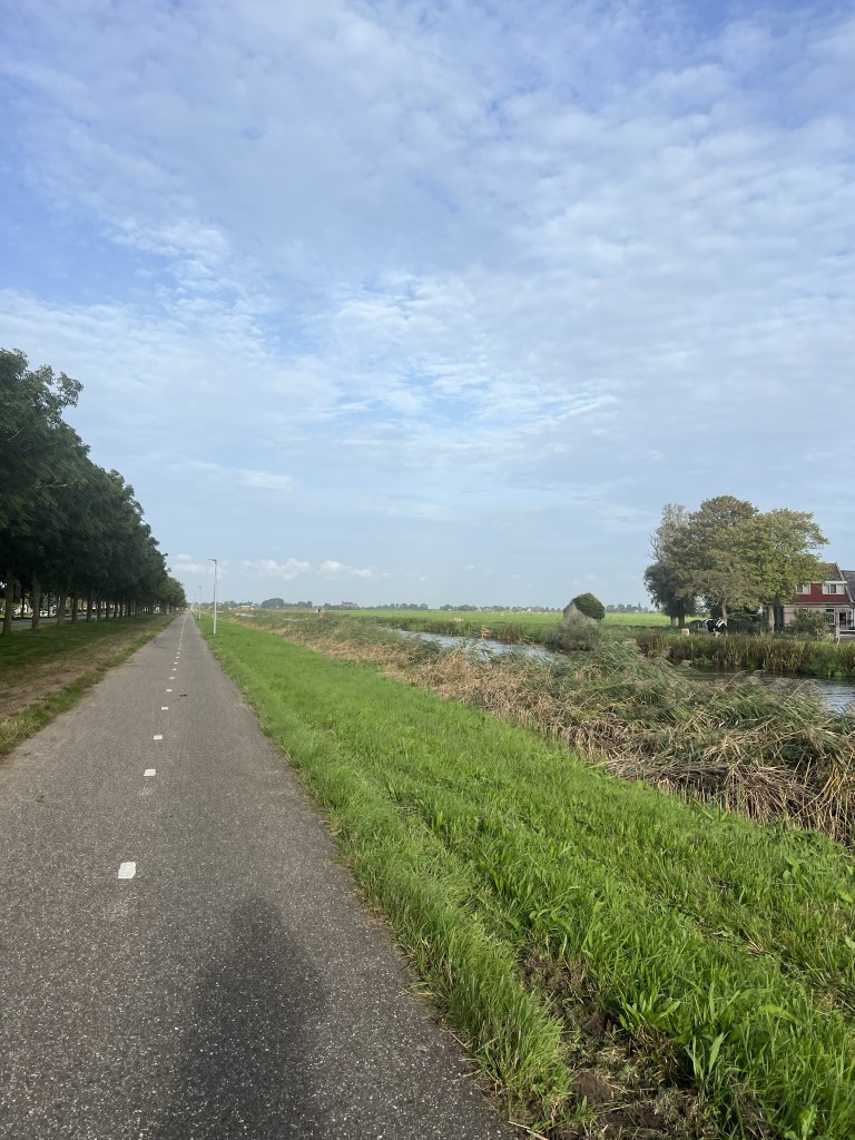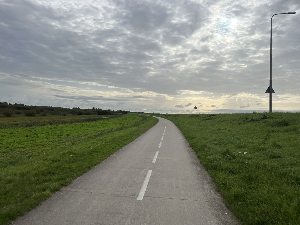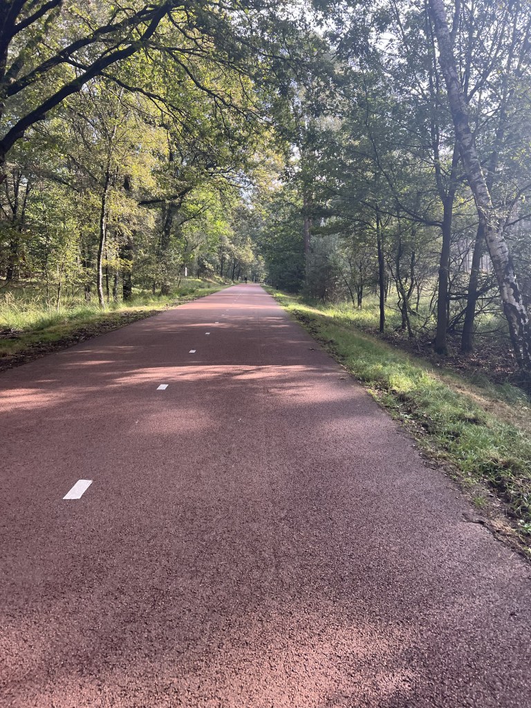 Ik geniet nog een keer van het fietspad waar ik inmiddels al de nodige keren over heen en weer gereden ben. Toch net een beetje anders dan mijn wegen thuis.