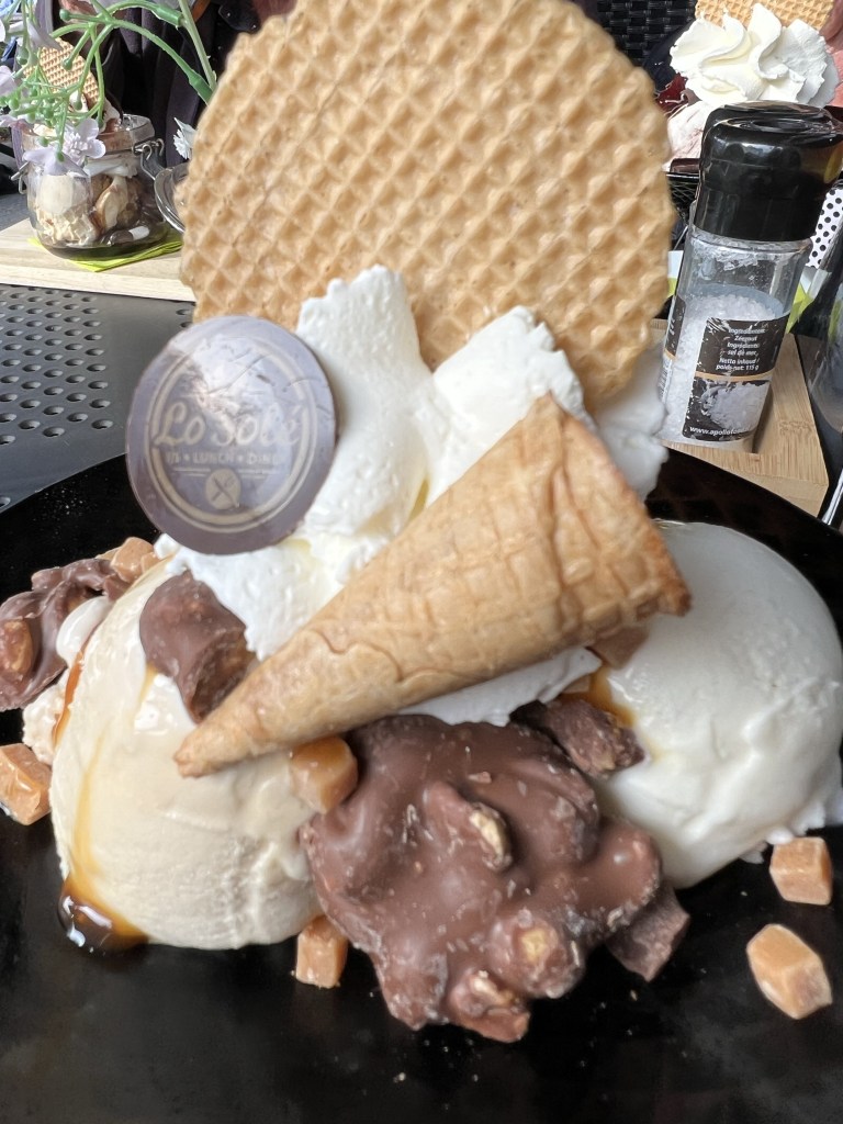 Daarom deden we ons ‘s middags maar eens tegoed aan een ijsje en een glas limonade in Bolzano. Spaghetti ijs natuurlijk!