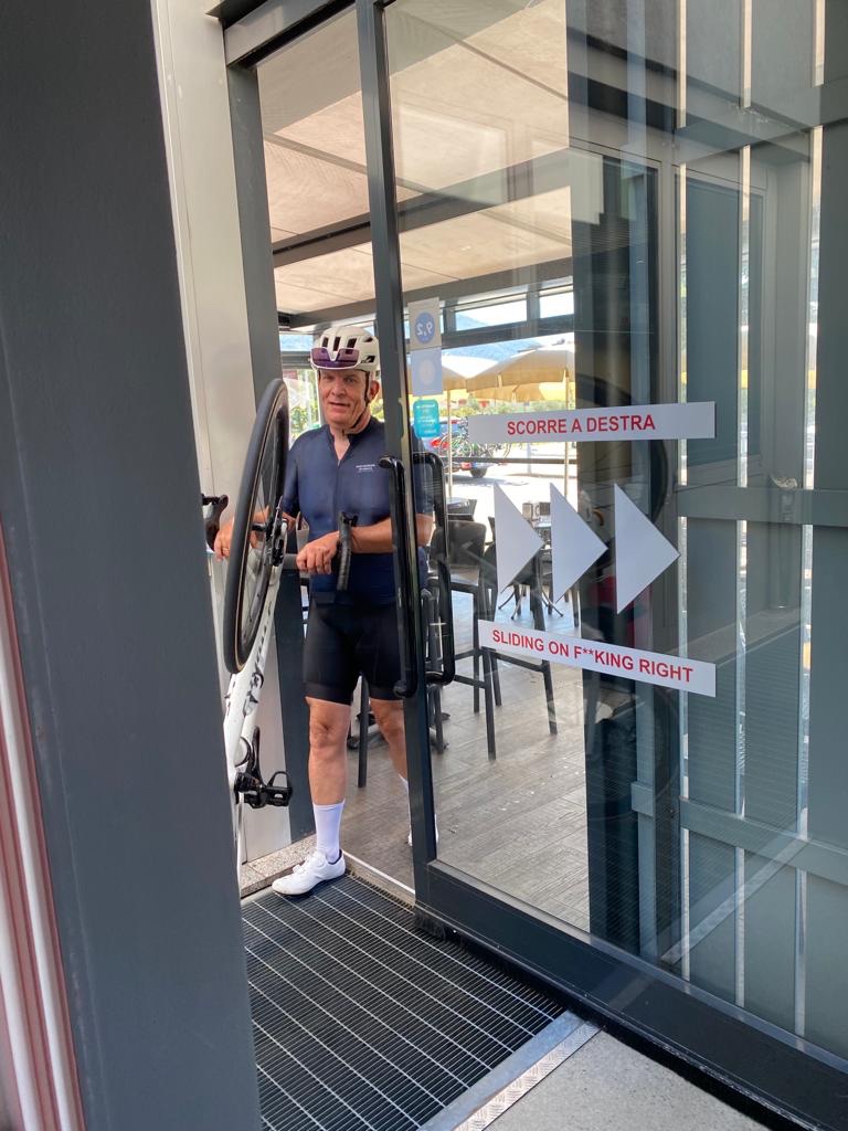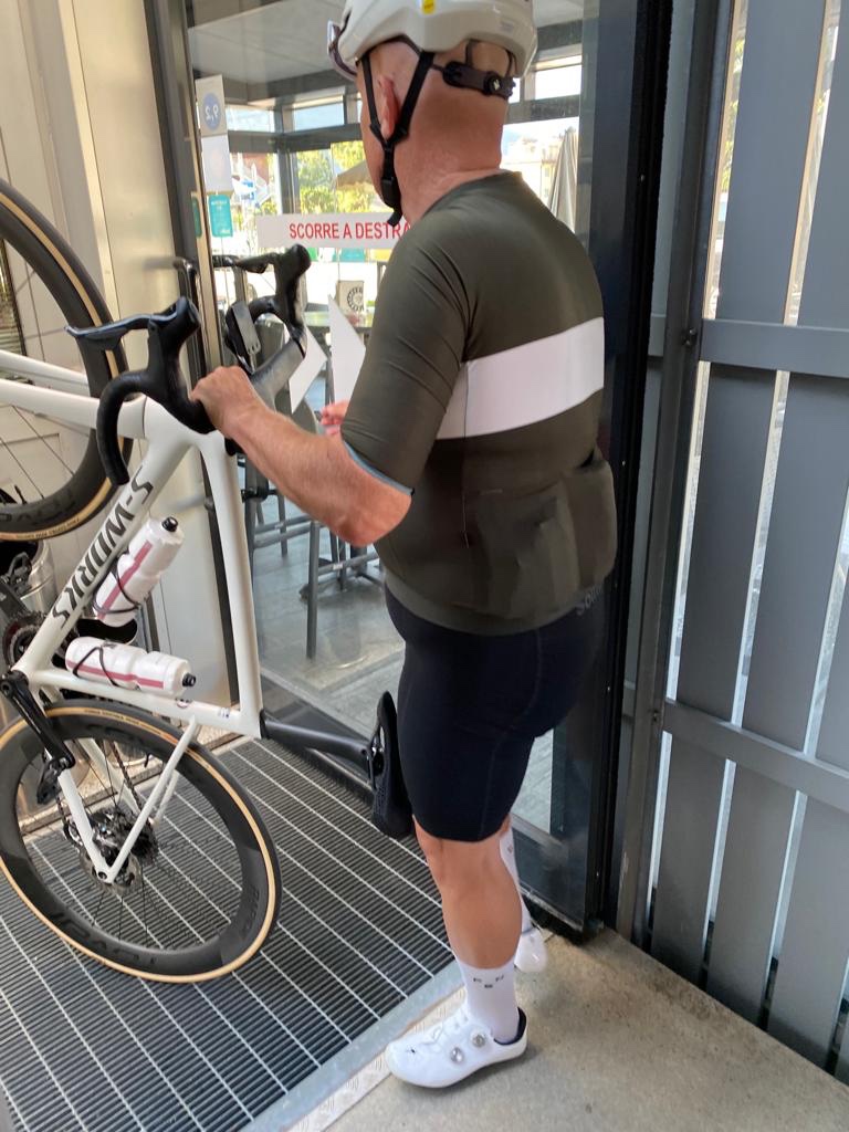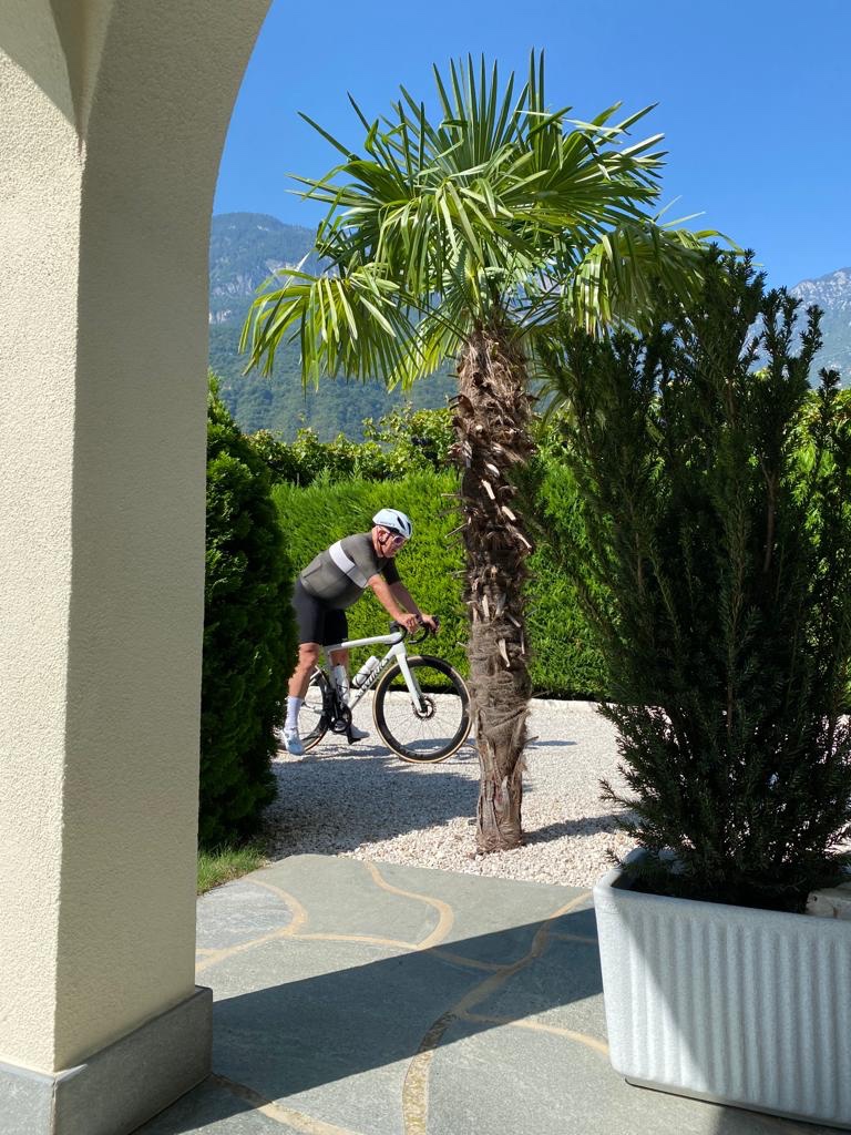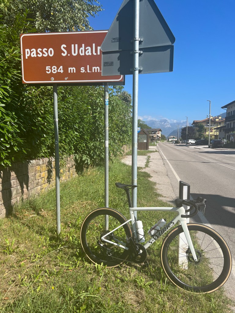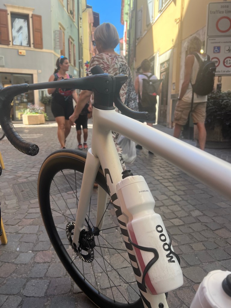 Een klein sprintje nadat we een weg over moesten steken, maar verder was het vooral stevig doorrijden, tot aan Bolzano. Dat was blok 3. Daar ontving ik weer de bedankjes en de vraag waarom mijn derailleur aan een roze padje hing. “Marginal gains” was mijn antwoord. Enig trots, die Italianen kennen het vak van complimenten geven, toen ze vroegen of ik ex-profi was, zoals ik maar door bleef rijden.