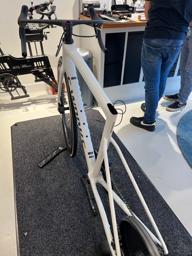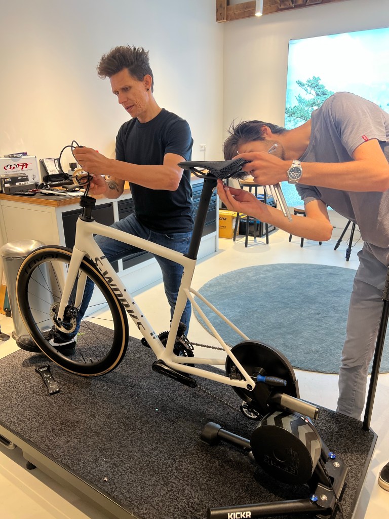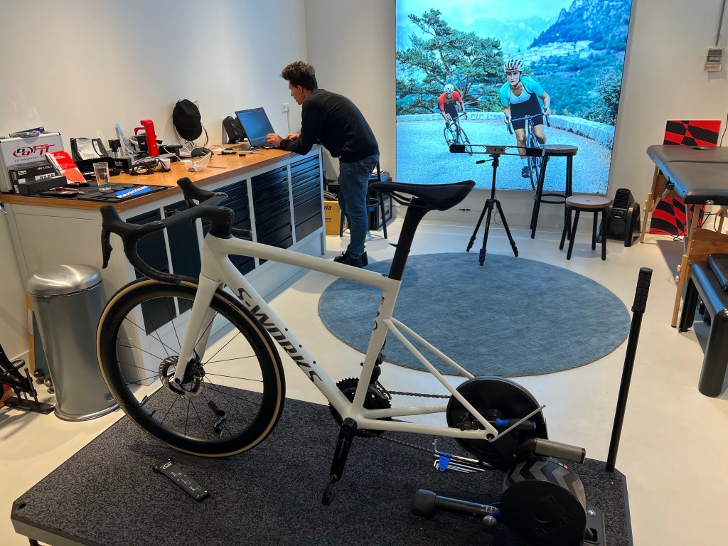 Zo wordt er voor gezorgd dat de maten niet ongeveer, maar precies over worden gezet en om nog de laatste puntjes op de I te zetten. Als we het over marginal gains hebben, dan zeker ook op dit vlak. Knie net iets rechter, been net wat beter strekken, stand van het zadel iets meer ondersteunend. Door de nieuwe pedalen en schoenplaatjes is dat ook nog extra gecontroleerd en lijkt alles nog iets beter te kloppen.