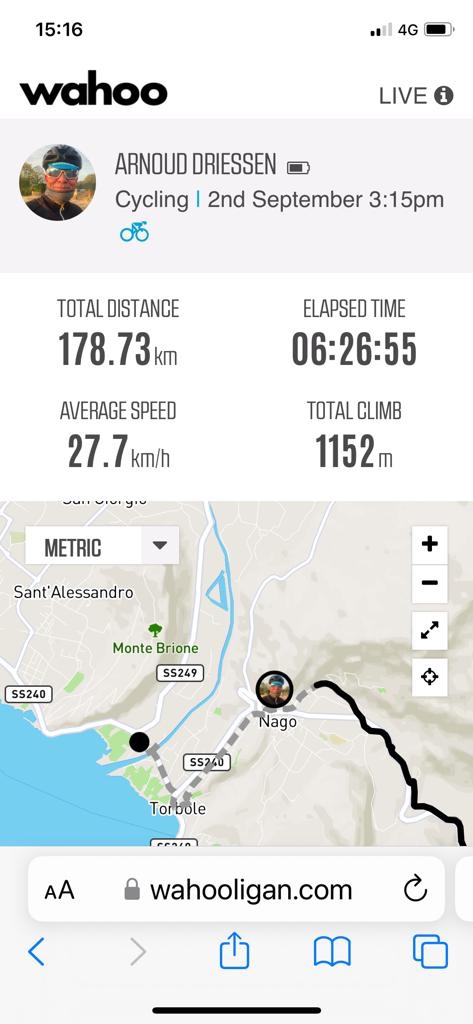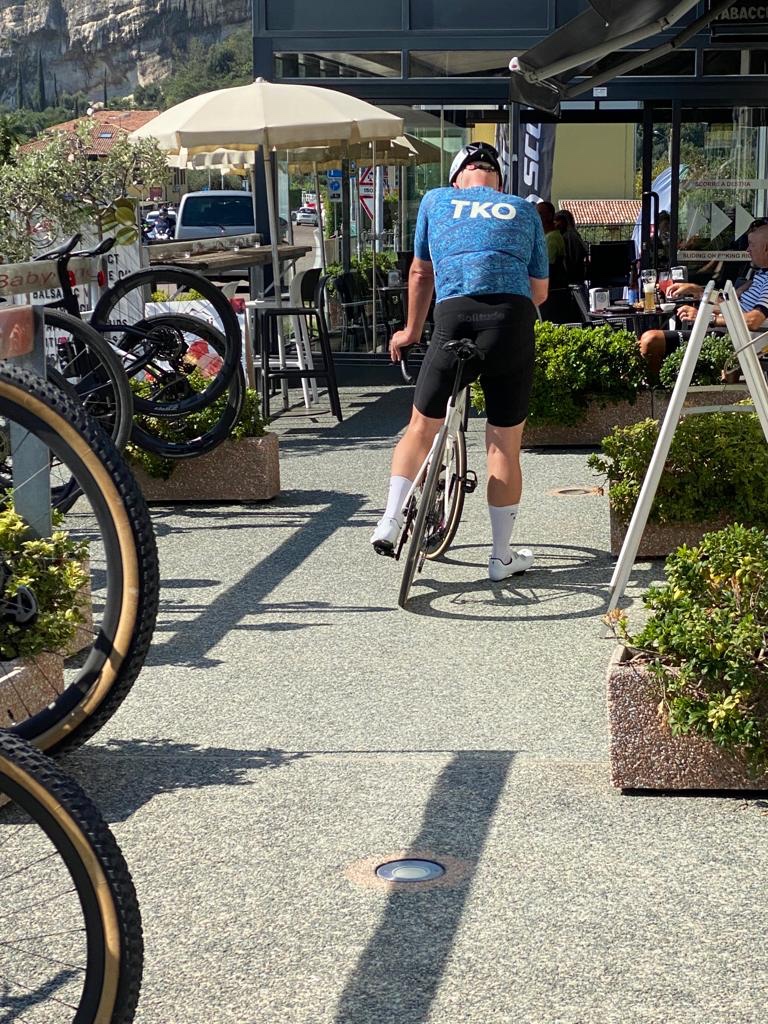 Strava uitzetten en drinken. En praten natuurlijk. Eerst over E en mijn belevenissen van de dag en dan met Rinaldo over wat er in de zomer gebeurt is. Glazenrek van de muur, medewerkster met nierproblemen, te hete zomer en meer van dat soort Italiaans drama.