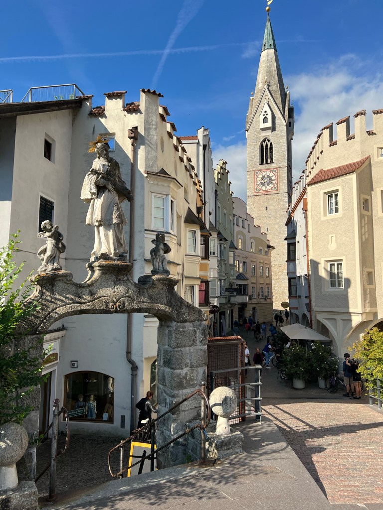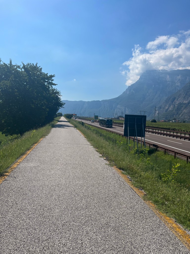 Ik rijd door, of is het meer langs, Brixen. Slingerend om de A22. Op weg naar Klausen. Het plaatsje waar ik meestal keer als ik vanuit Tramin deze kant op fiets. De wegen worden dus steeds bekender. Het is het lang rijden over een fietspad. Wel af en toe met een gravel pad.
