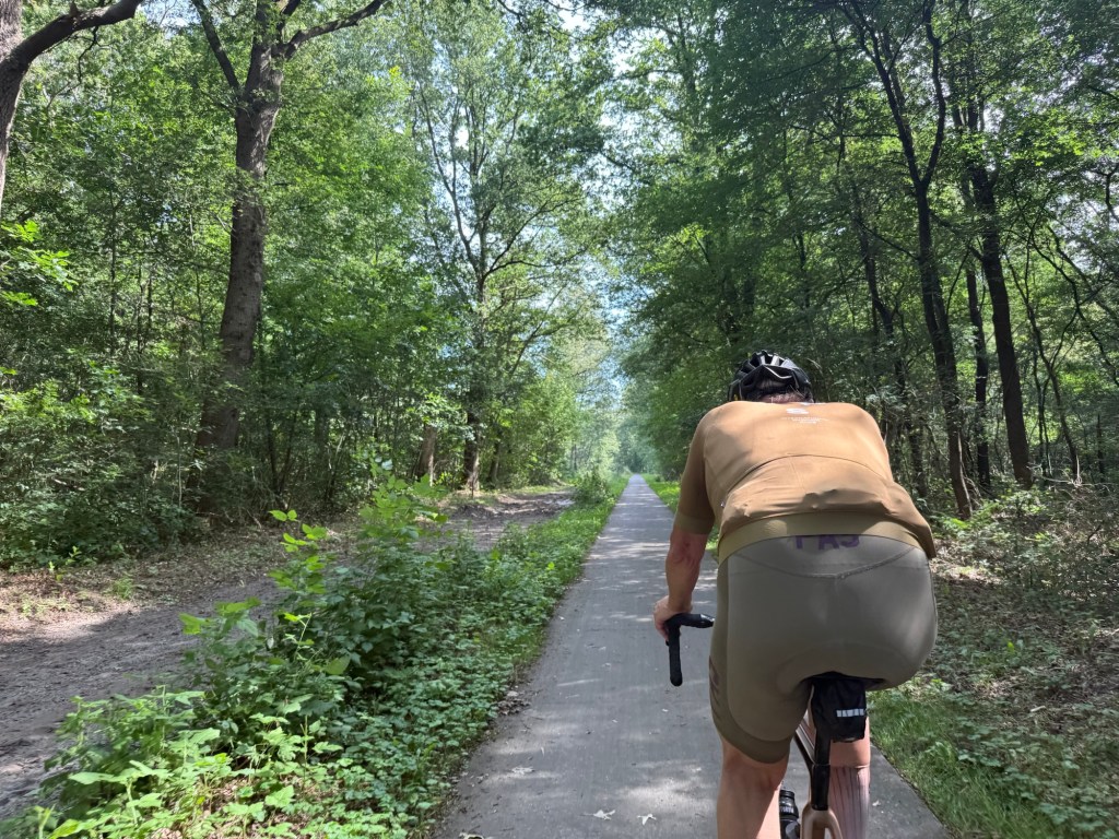 Zo kwam ik in het dal en fietste over wat toch wel één van de minst prettige fietspaden op de route genoemd mag worden terug naar huis.