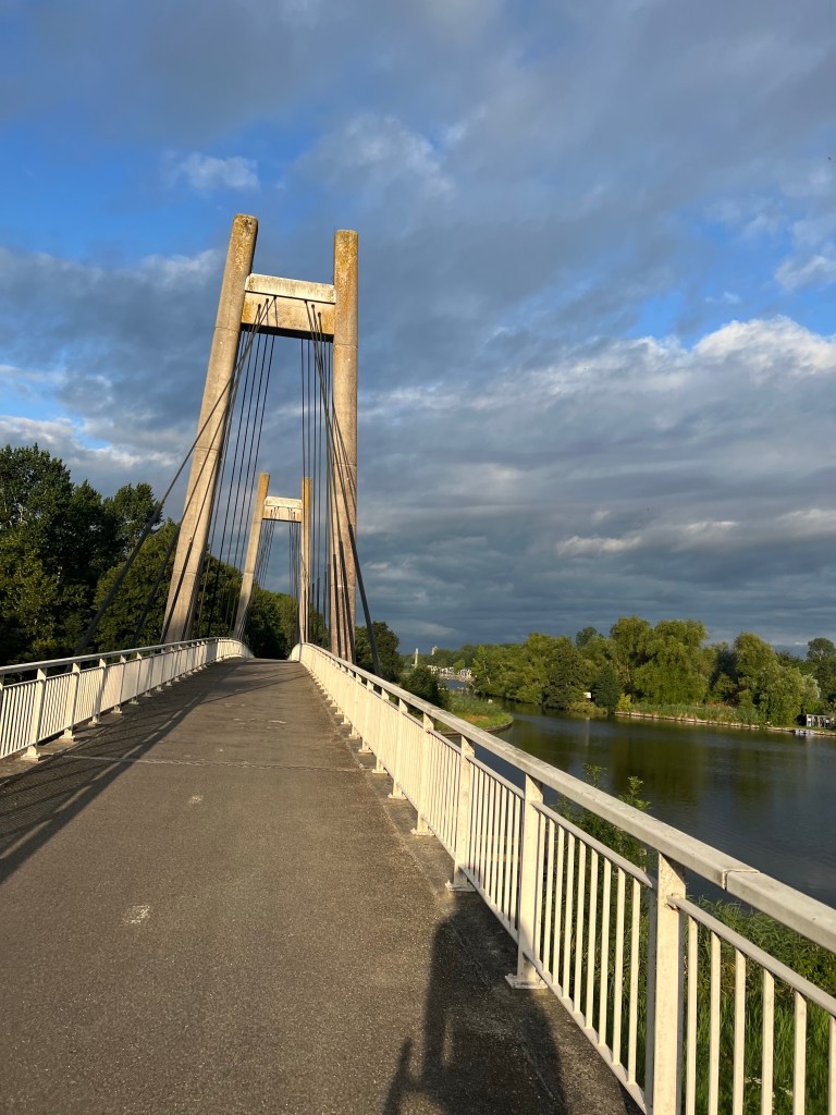 Door naar Weesp. Kost allemaal geen inspanning zo. Brug over het Amsterdam Rijnkanaal. Tandje er bij. Ik train op het staand rijden. Wind in de flank. Beetje duwen. Maar als je, je goed voelt gaat het goed door. Dan zijn de Rovals een soort zeilen en duwen de wielen je voort.