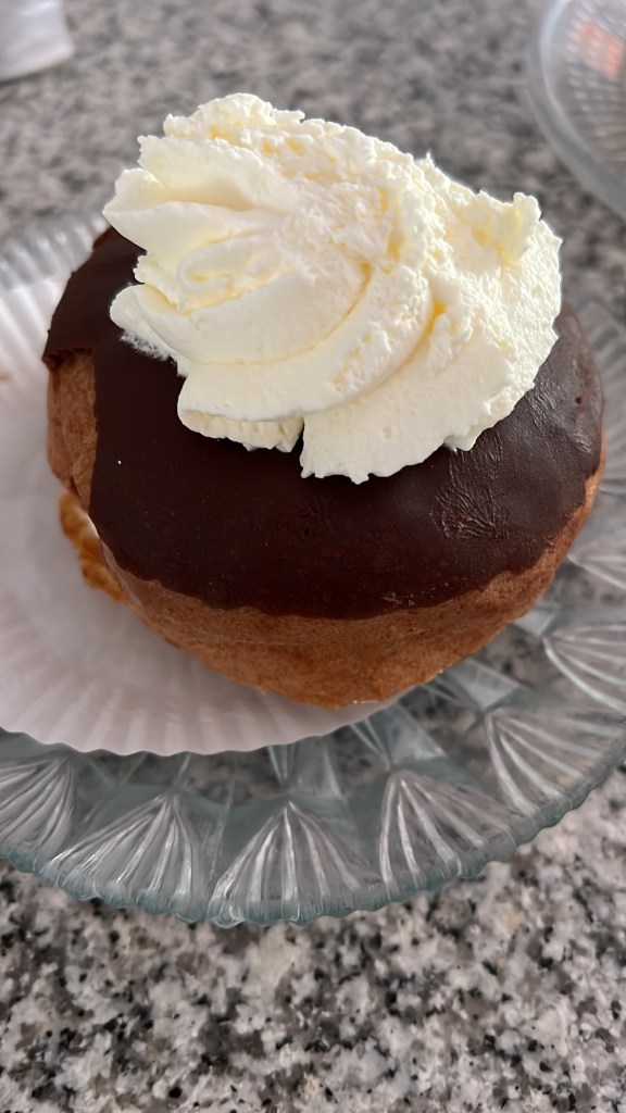 Dus ‘s ochtends eerst gedaan wat goed voor de geest en het gestel, maar misschien iets minder voor het gewicht is. Op pad met E en genoten van een versnapering. Ik weet niet wat de woke naam is voor dit gebak.