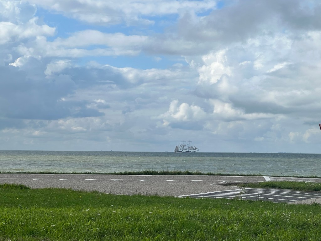 Maar een blik op een schip als dit maakt buiten fietsen toch wel erg leuk en laat je de wind vergeten die eigenlijk de hele rit in de zij blies en nog stevig ook.