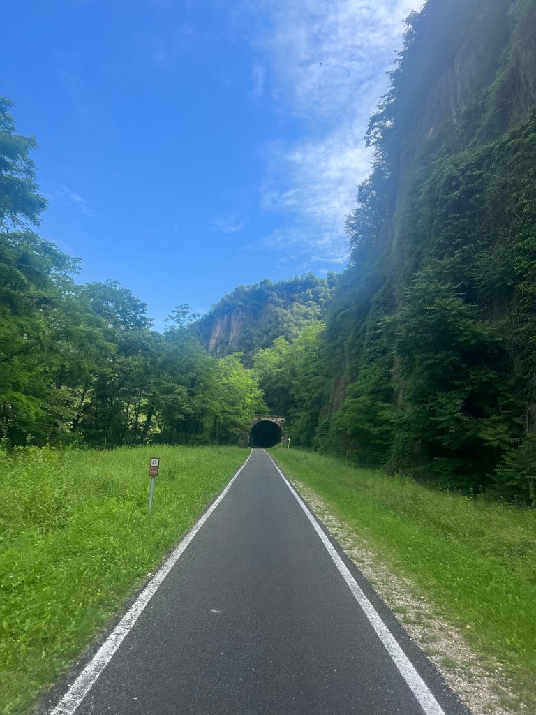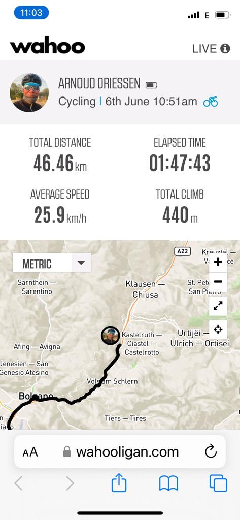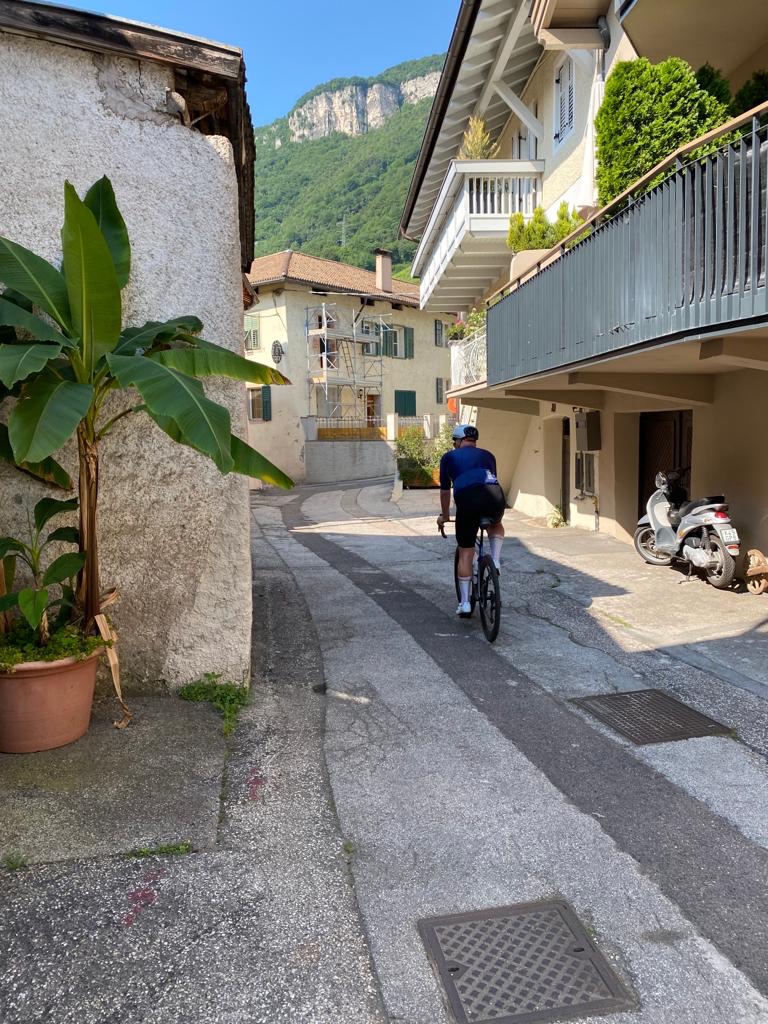 Ik rijd in gepaste gestrekte draf en keer om bij Mezzocorona. Het laatste deel speelt gelukkig steeds minder parten, maar had E en mij vlak voor de vakantie en aan het begin er van echt heel erg te pakken.