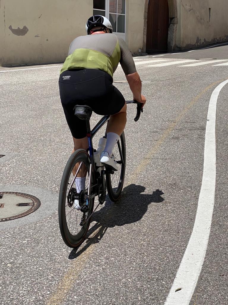 De irritante Italiaanse wielrenner, inhalen en als hij door heeft dat ik in zijn wiel mee ga inhouden, sprint ik er op een paar stijgende meters en door daarna door te rijden af. Aan mijn lijf geen polonaise.