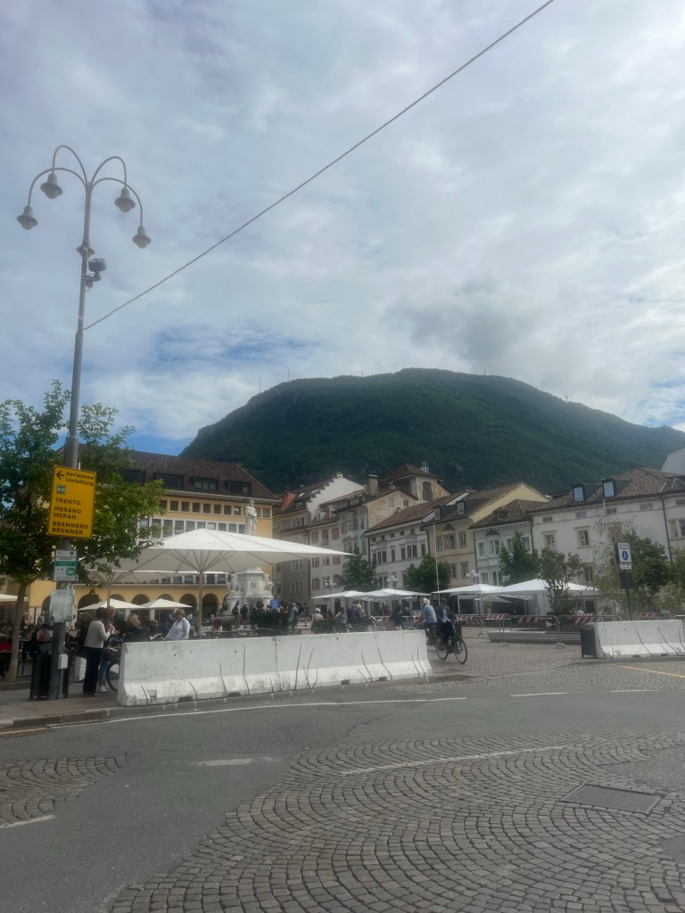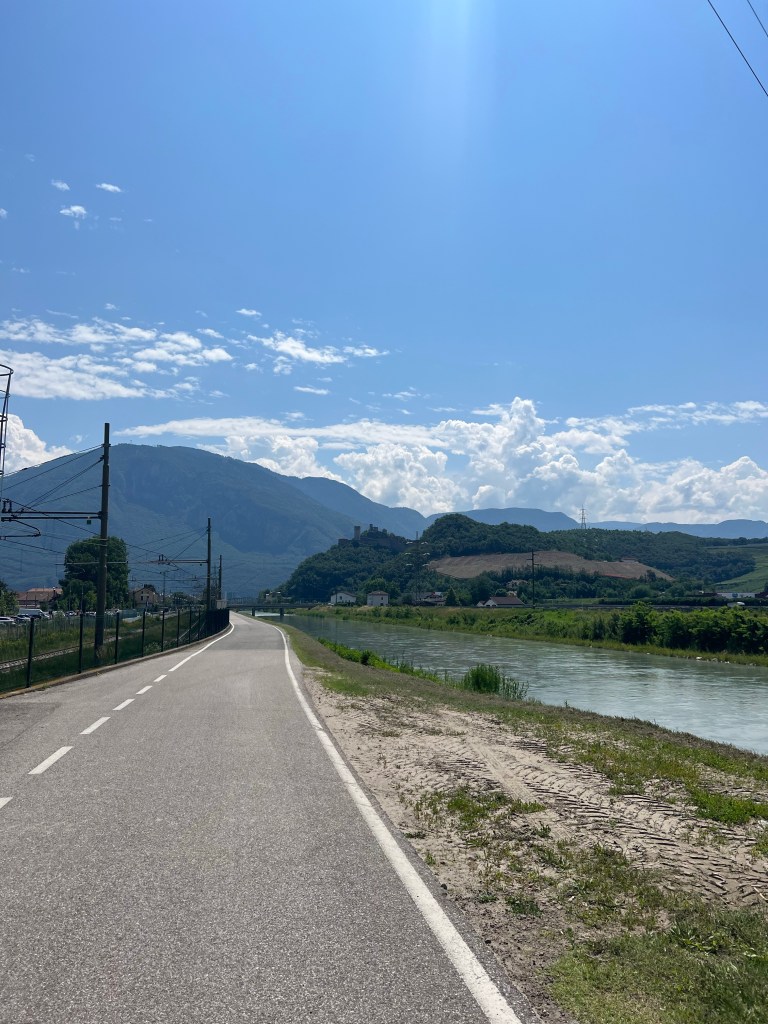 Ik besluit mijn gedachten te verzetten en me op het trappen te focussen. Op naar Bolzano. Fietspad. Heel Italië op racefietsen rijdt de andere kant op, zo lijkt het. Past ook wel met de wind die meer vanuit het zuiden gaat komen in de loop van de dag. Heel hard waait het trouwens niet.