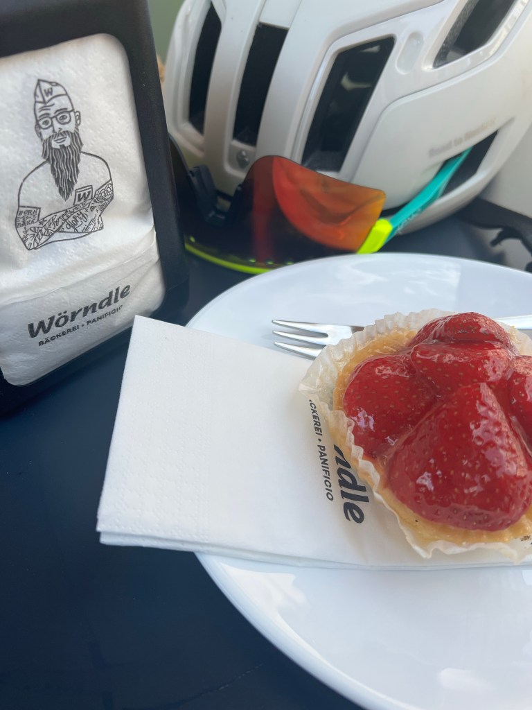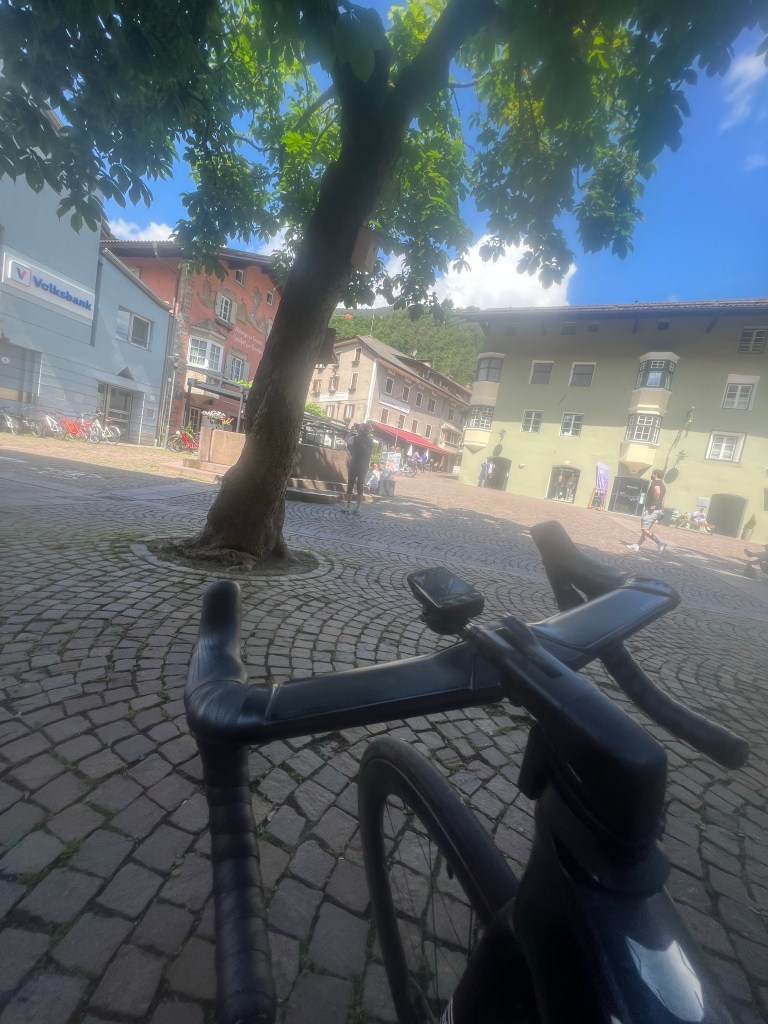 In Meran keer ik om en begin rustiger terug te fietsen. Kom één van de gelost en hoofdschuddend tegen. We lachen.