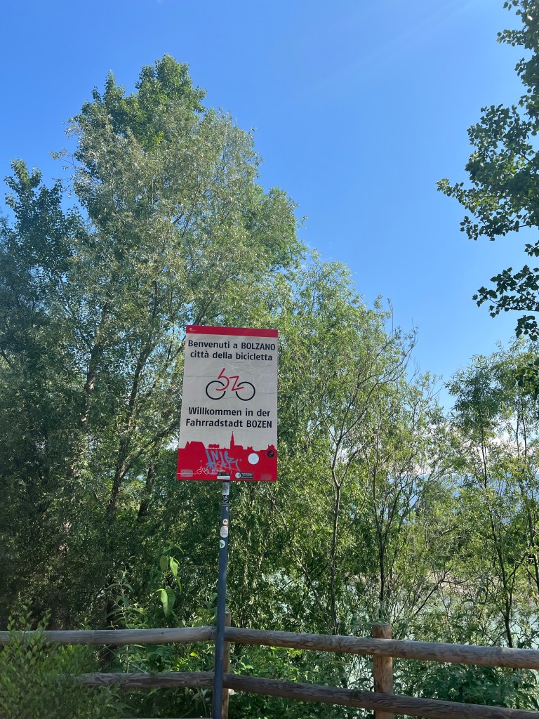 Maar op het fietspad aangekomen krijg ik er meer zin in. Zo trap ik richting Bolzano. De stad die zich als fiets stad kenbaar maakt.