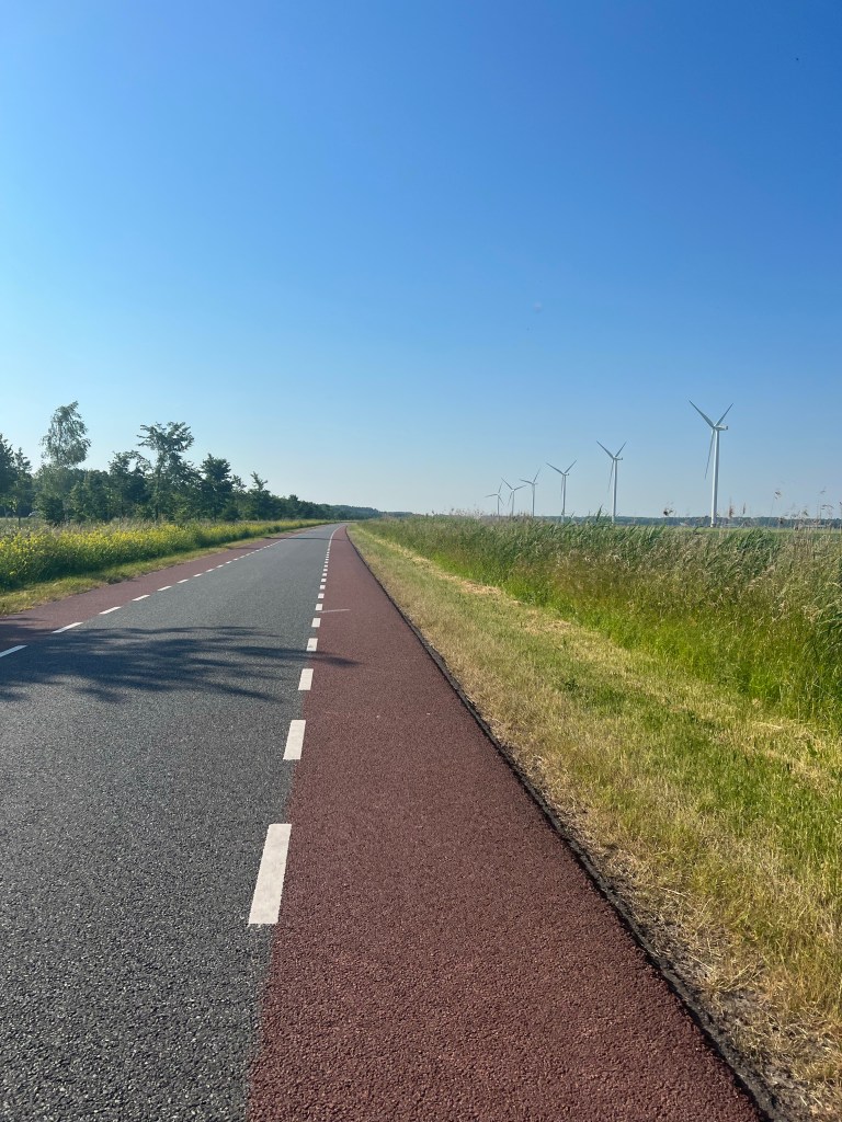 De lange polderwegen nodigen uit voor gecontroleerd rijden, zonder je al te druk te hoeven maken over de rest van het verkeer. Dat bevalt goed. De windmolens zijn voor het oog niet zo fijn, maar wel zo handig om te weten waar de wind vandaan komt. Meer een bevestiging dat het niet alleen het gevoel is, maar echt de waarheid.