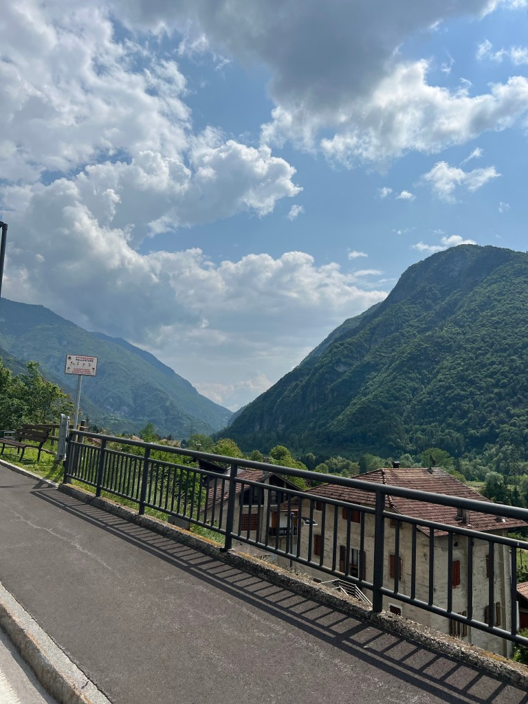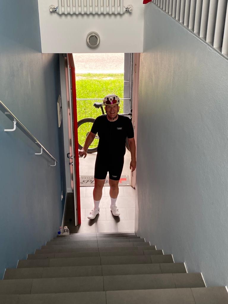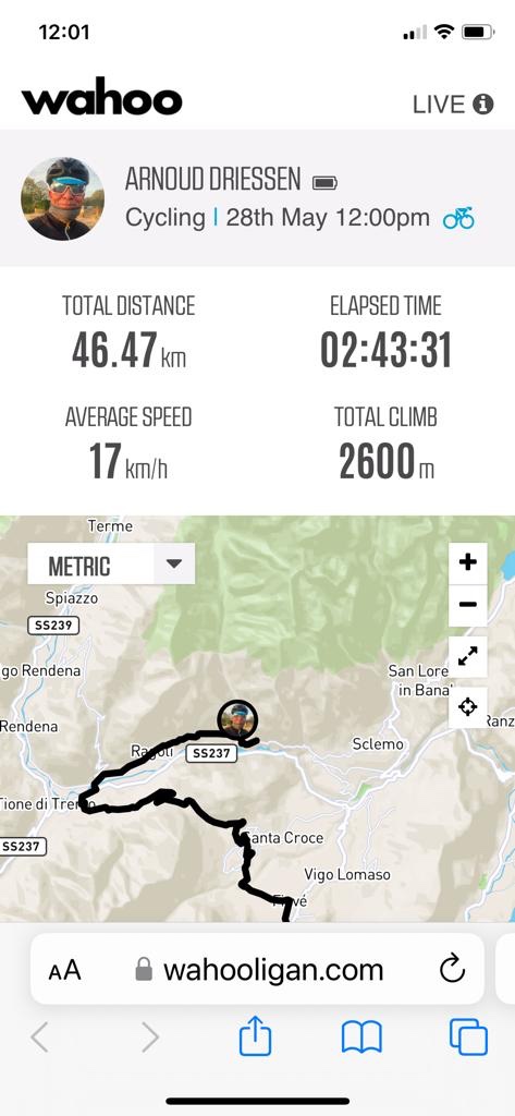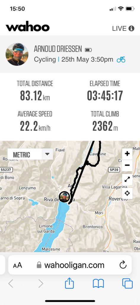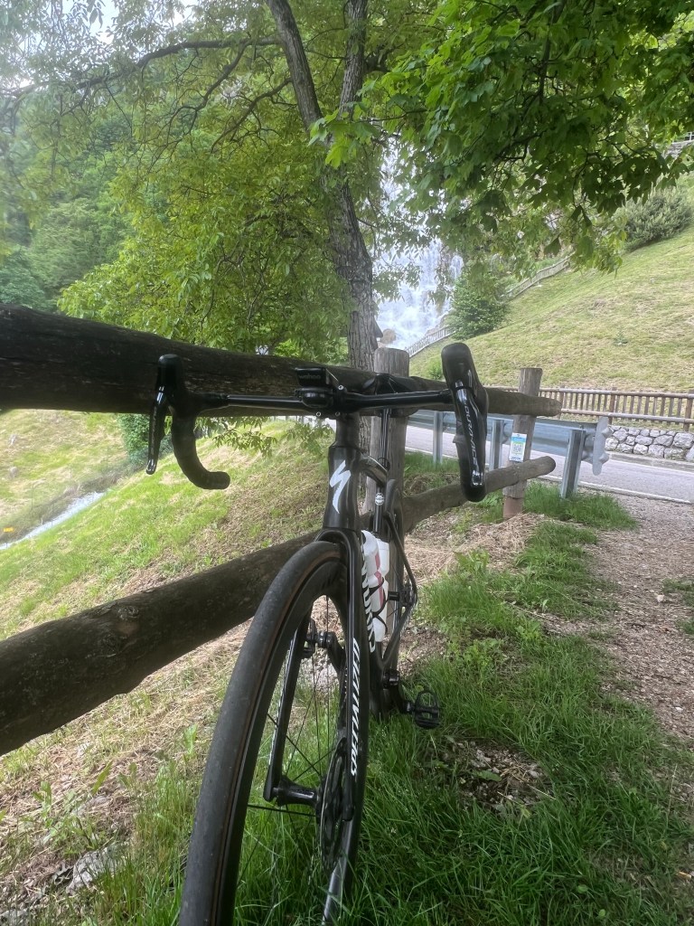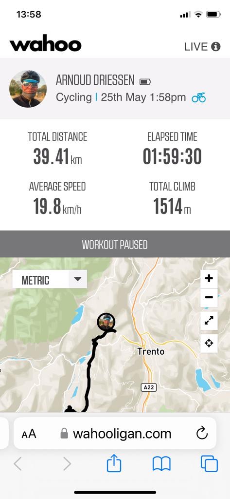 Bij Bolzano in de buurt de afslag nemen naar Meran. Bij het water punt stak een wielrenner net zijn bidons in zijn houders. Zoals later bleek om daarna in mijn wiel te duiken. Ik zag in de verte een mooi richtpunt rijden. Focus daarop en strak tempo. Langzaam maar zeker haalde ik hem binnen. Dacht een wiel te hebben, maar Italiaans slinks liet hij me er voorbij. Door dan maar.