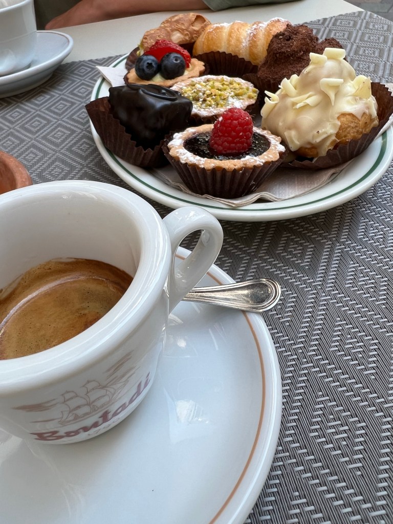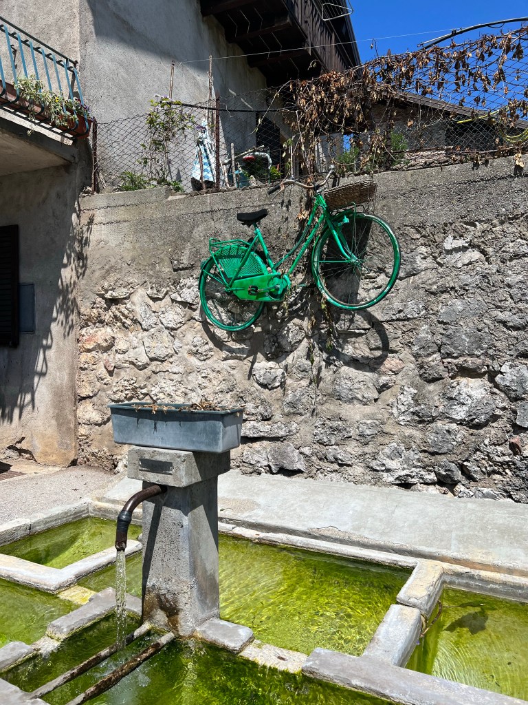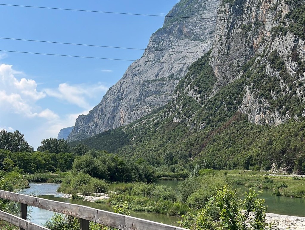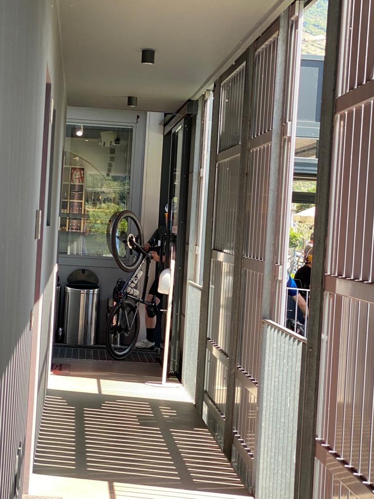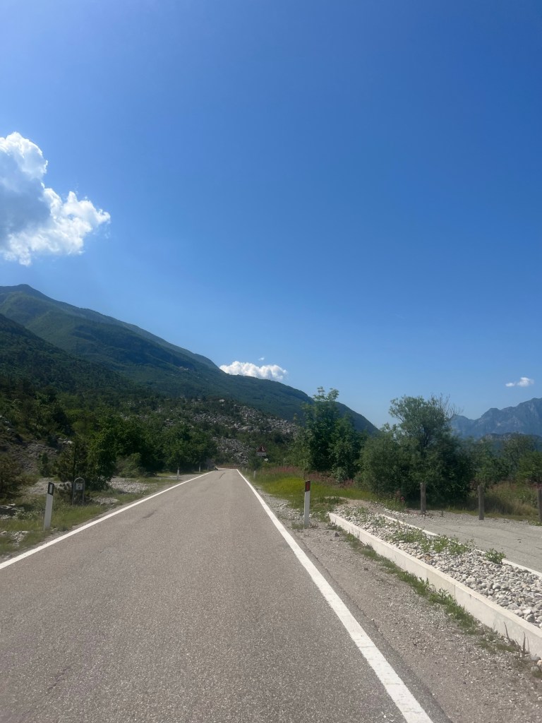 De afstand bleef gelijk, maar het leek op een gegeven moment kleiner te worden. En kleiner. En kleiner. En kleiner. En zo dacht ik een wiel gevonden te hebben, maar bij weer een weg onderdoorgang, precies op het punt dat ik aansloot, rolde ik er sneller voorbij en werd me handig de koppositie opgedrongen. Dan maar weer gaan. Strak. Niet zeuren. Wie op kop rijdt heeft het meeste trainingseffect. Zo gingen we door. Nog een wielrenner die zijn excuses aanbood met een handje, omdat hij niet goed genoeg aan de kant ging toen ik belde. Italiaanse flair.