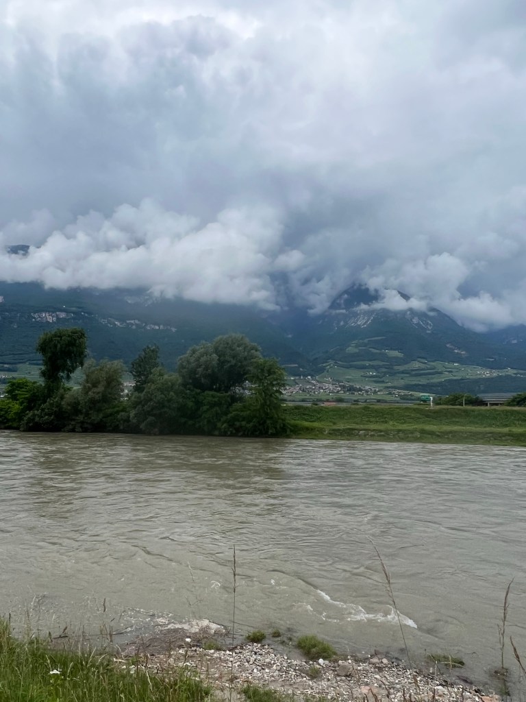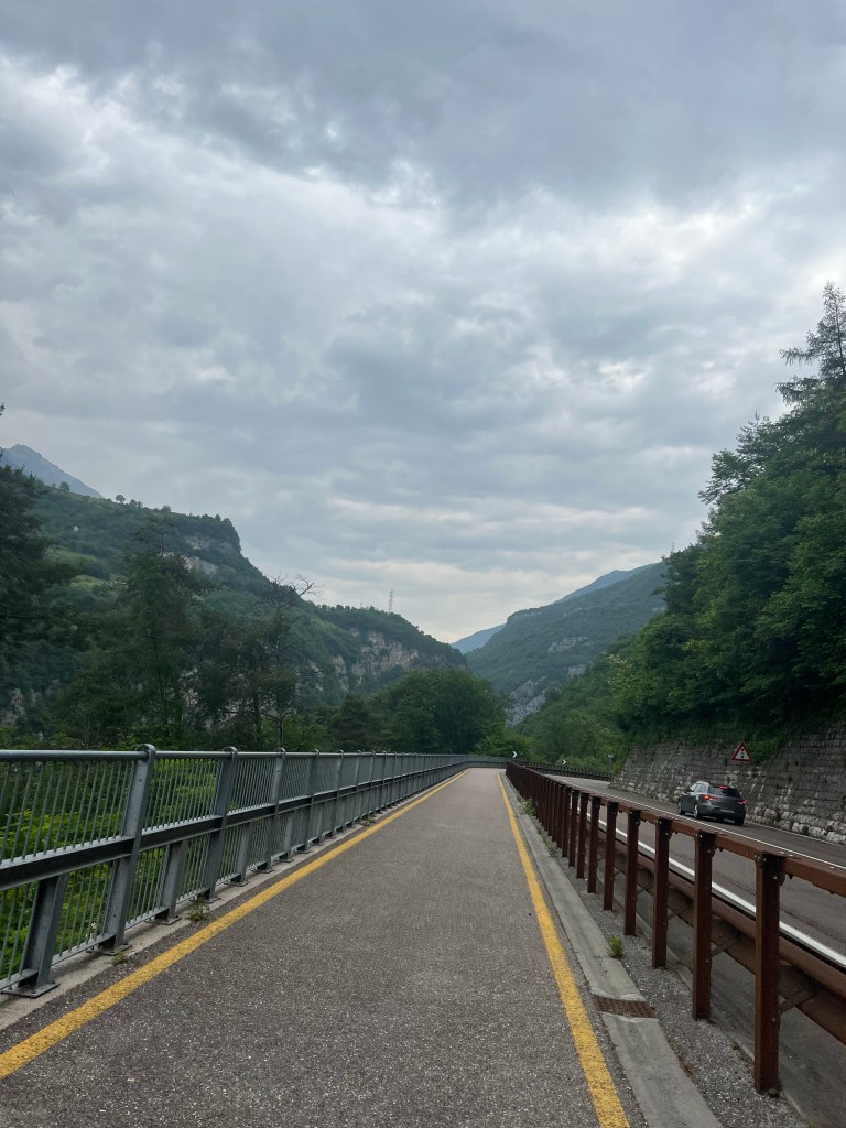 De verplaatsing heeft ook als voordeel dat er vlakkere kilometers te vinden zijn over een prima fietspad. Langs de A22 loopt min of meer de A22 voor fietsers en in het zijdal richting Meran loopt een zelfde pad. Ideale omstandigheden om te rijden dus. De weersvoorspelling was niet helemaal perfect, maar door het hier heersende Micro klimaat en de bergruggen die de meeste wolken vasthouden, was het ideaal om te fietsen.