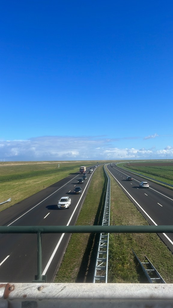 Voorbij de prinses. Het valsplat op been tempo. In Baarn rechtdoor. Waarom niet een bijbelbelt lusje er bij. Spakenburg. Ver van de kerk weggebleven. Door de polder en de brug bij Nijkerk over naar het nieuwe land. Gaatje dichtrijden naar een fietser voor me. Ik kan toch sneller als ik het wil.