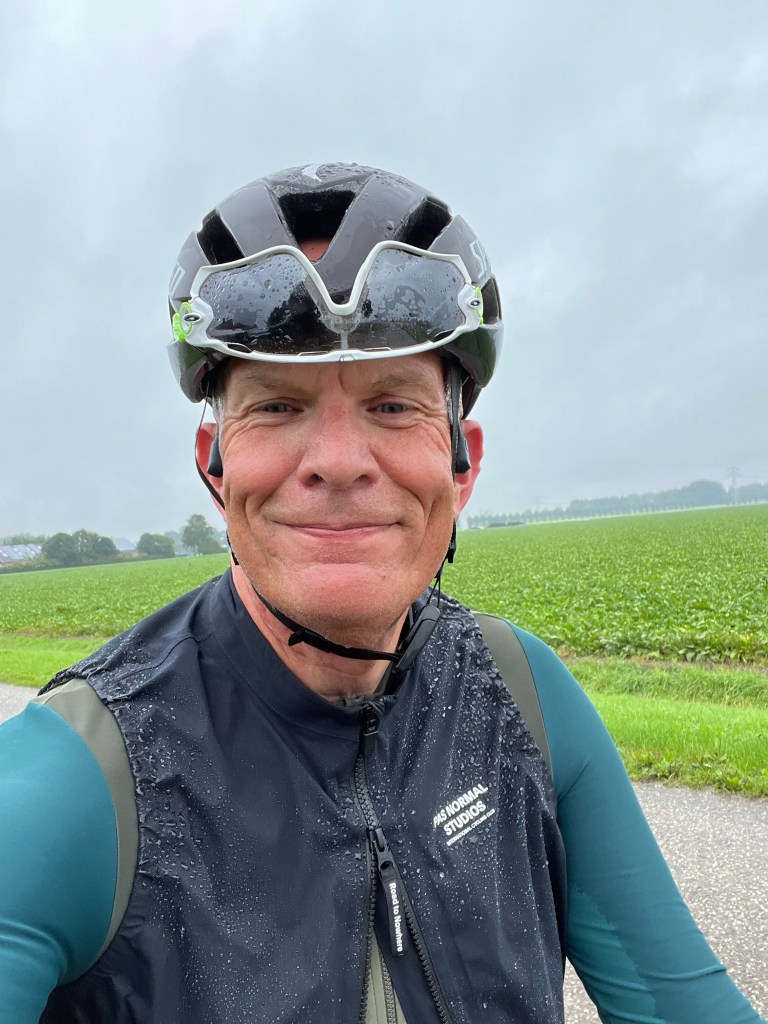 Zo ging ik dus van de stralende Italiaanse omstandigheden naar de natte polder. Zelfs met mijn regen-bodywarmer aan. Best nodig.