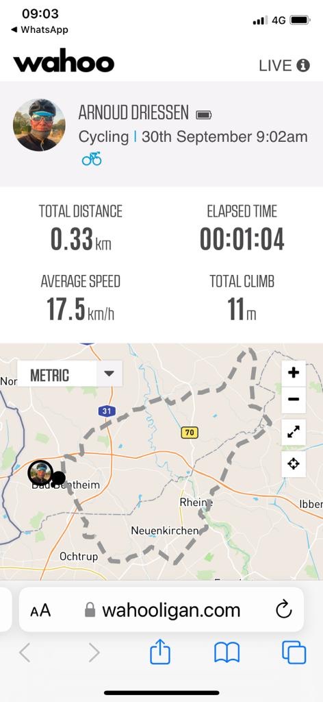 Op naar oktober. Maar nu echt. Van Join heb ik begrepen dat stilstaan achteruitgaan is en nietsdoen helemaal verschrikkelijk is. Dat niets doen moet ik dus maar zien te beperken. Afgelopen week daarvoor ook al mijn best gedaan. Zowel woensdag als donderdag een uur in Zwift gereden. Zo doe je dat. Ook als het wat zelfoverwinning vraagt en je liever voor de eenvoudige weg richting bureaustoel gaat.