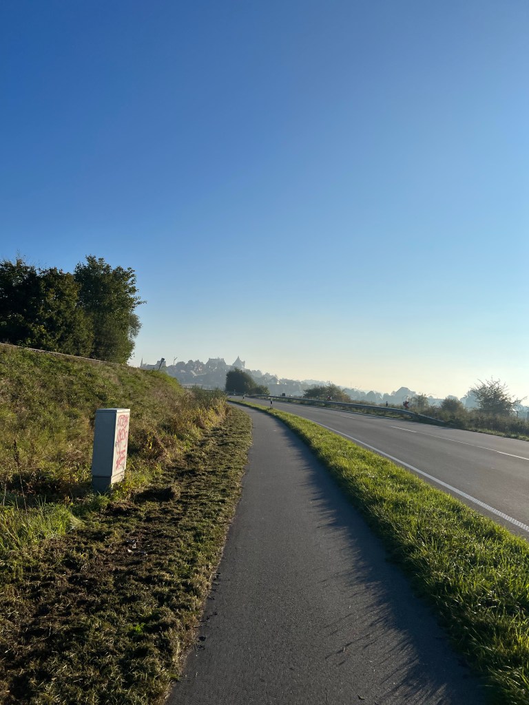 De omgeving gaf me een “oost Nederland” gevoel. Klopt ook wel, want het is maar een paar kilometer over de grens. Afwisselend velden en bossen. Heel veel glooiende wegen. Steeds een half of een heel procentje omhoog of omlaag.